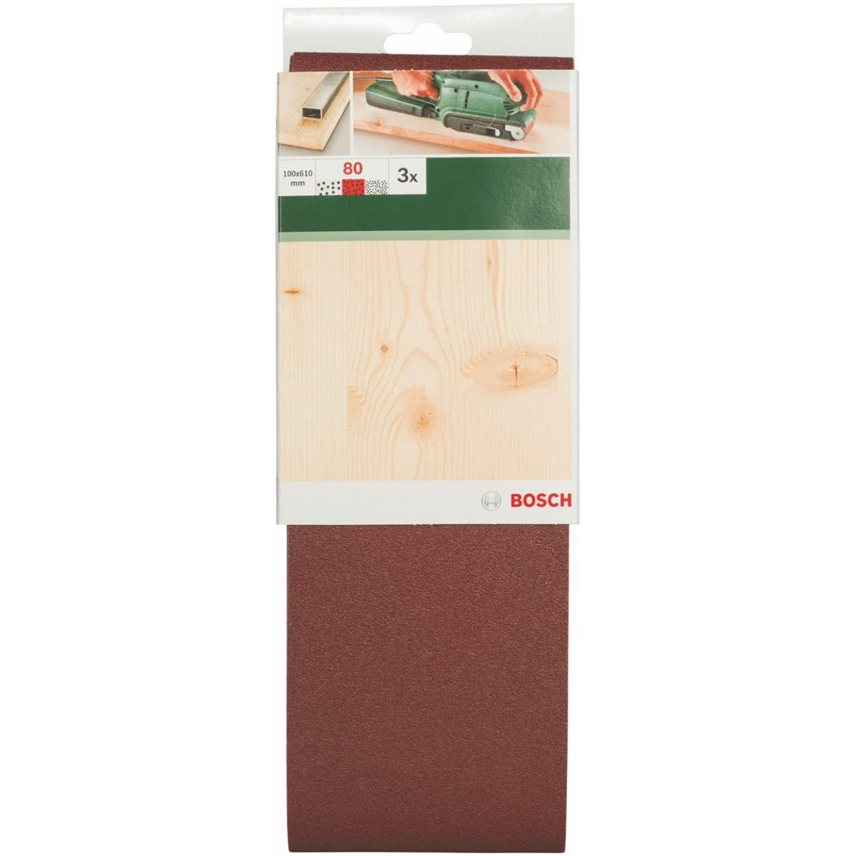 Bosch 3 Nastri abrasivi per levigatrice a nastro RedWood 100x610 mm, G80, con fissaggio a staffa, non forati, 3pz nella