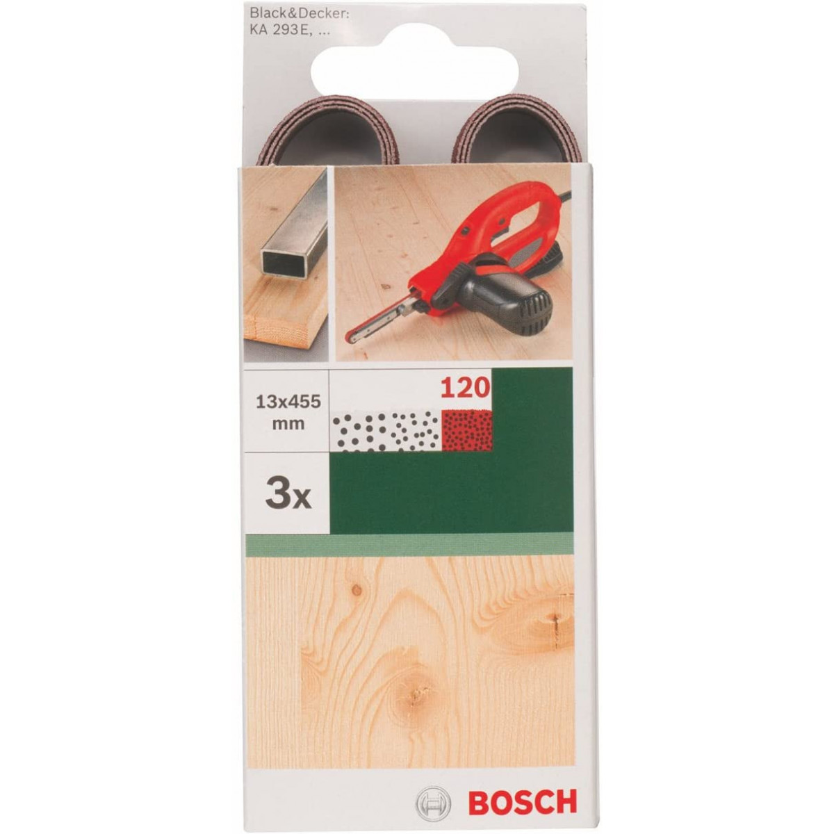 Bosch 3 Nastri abrasivi per levigatrice a nastro RedWood 13x451 mm, G120, con fissaggio a staffa, non forati, 3pz nella