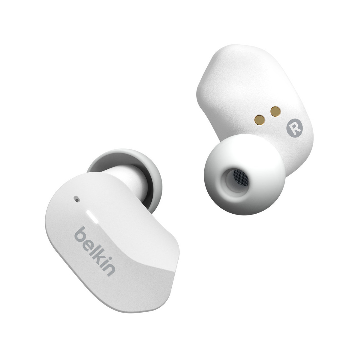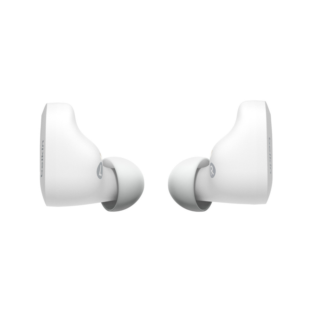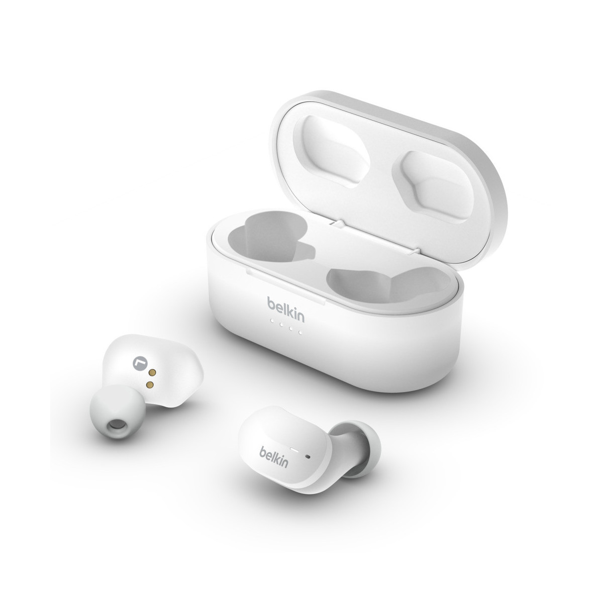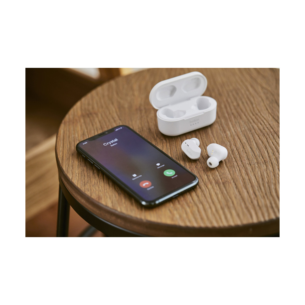 Belkin AUC001BTWH. Tipo di prodotto: Cuffie, Stile d'uso: In-ear, Utilizzo raccomandato: MUSICA. Tecnologia di connessione: Wireless, Connettore USB: Micro-USB. Disegno auricolare: Intraurale. Tipo batteria: Batteria integrata, Durata batteria: 5 h, Riproduzione audio continua: 5 h. Dimensioni della custodia di ricarica (L x P x A): 70 x 36,5 x 30 mm, Peso della borsa del caricatore: 43 g