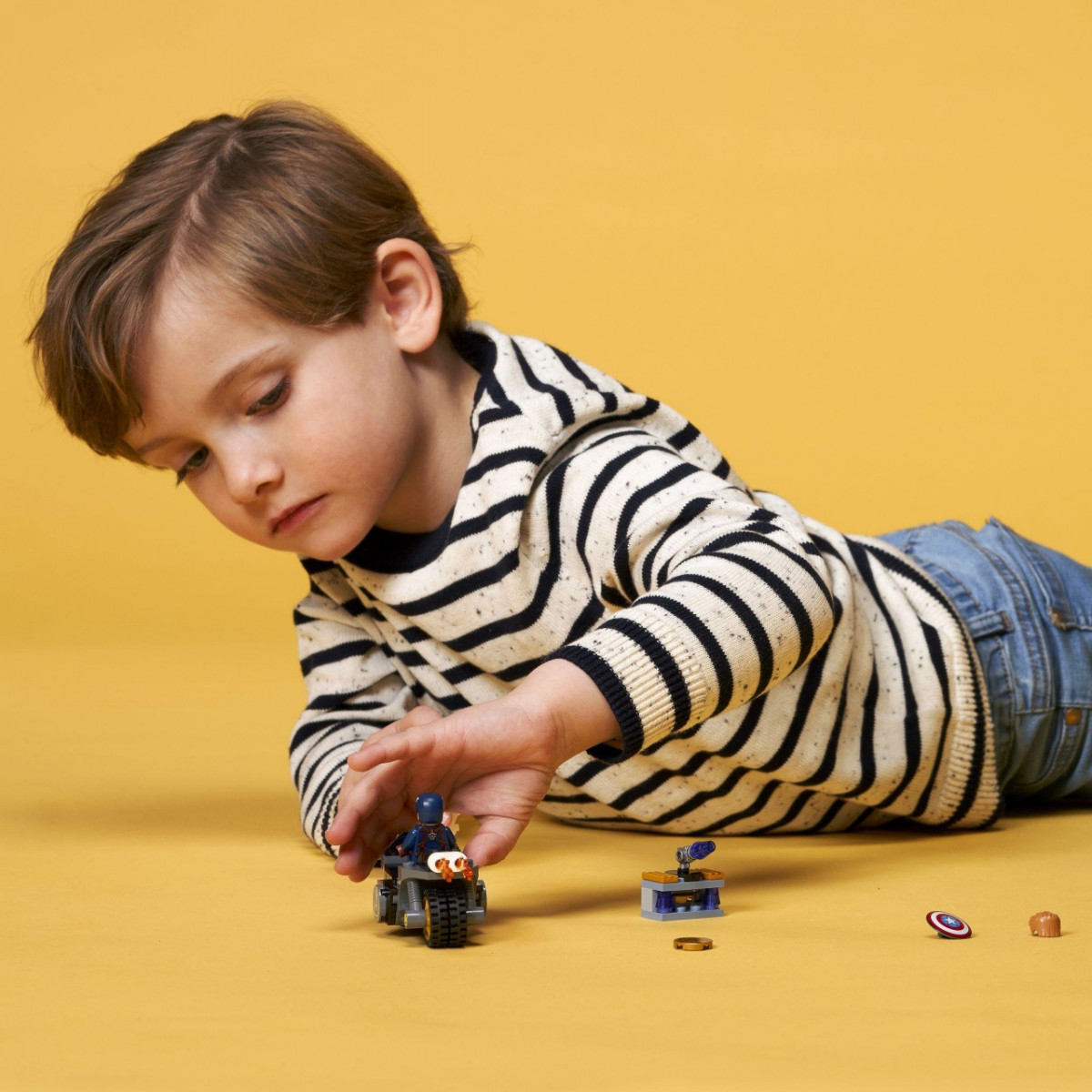 Pensati per i giovani costruttori, i giocattoli costruibili dei supereroi LEGO 4+ sono ricchi di dettagli coinvolgenti per garantire ai bambini una magnifica esperienza di gioco. La confezione include delle bustine, ognuna delle quali contiene un modello completo e un personaggio che i bambini possono costruire rapidamente per iniziare subito a giocare! Il set include una moto giocattolo costruibile parzialmente costruita per aiutare i bambini a iniziare la costruzione in modo autonomo, più le minifigure giocattolo costruibili di Captain America e dell'agente Hydra. Nel set è inclusa una divertente guida illustrata che fornisce le semplici istruzioni di montaggio, ideale per i bambini che sono ancora alle prime armi con la lettura.