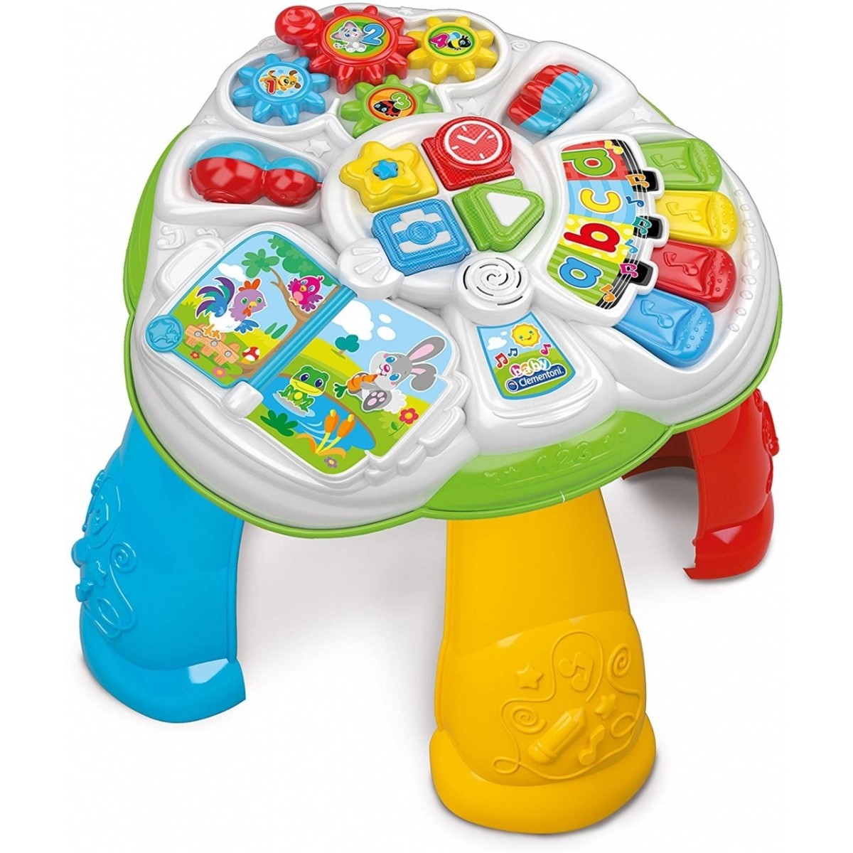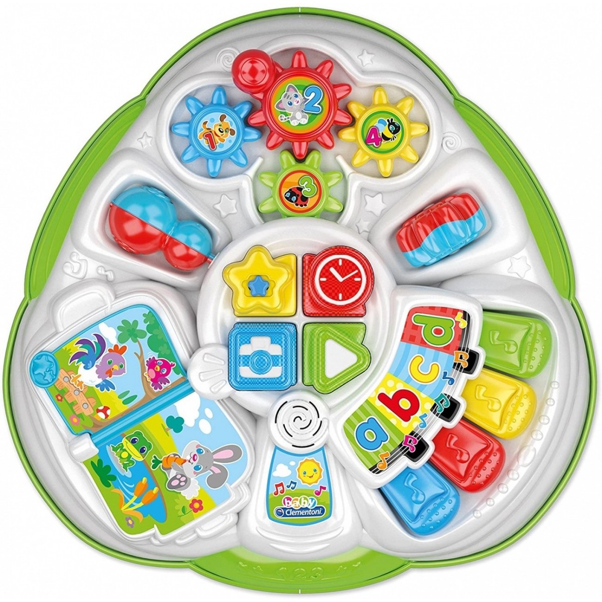 Un colorato tavolo ricco di attività educative per apprendere i numeri, le lettere, le forme e i colori, i nomi degli animali e i loro versi. Con tanti effetti luminosi, allegre canzoncine e filastrocche. Stimola i sensi e la manualità dei più piccoli. Il libriccino aiuta i bambini a riconoscere gli animali e i loro versi, il piano li fa avvicinare al mondo della musica e insegna le prime letterine, gli ingranaggi li portano alla scoperta dei primi numeri e favoriscono, assieme alle altre attività meccaniche, lo sviluppo delle abilità motorie.