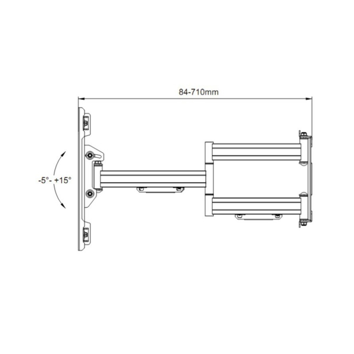 Multibrackets 2616. Peso massimo (capacità): 125 kg, Capienza minima dimensioni dello schermo: 139,7 cm (55"), Capienza massima dimensioni dello schermo: 2,79 m (110"), Compatibilità interfaccia di montaggio (min): 200 x 100 mm, Compatibilità interfaccia di montaggio (max): 600 x 400 mm. Inclinazione: -5 - 15°, Distanza dalla parete (min): 8,4 cm, Distanza dal muro (massima): 71 cm. Colore del prodotto: Nero