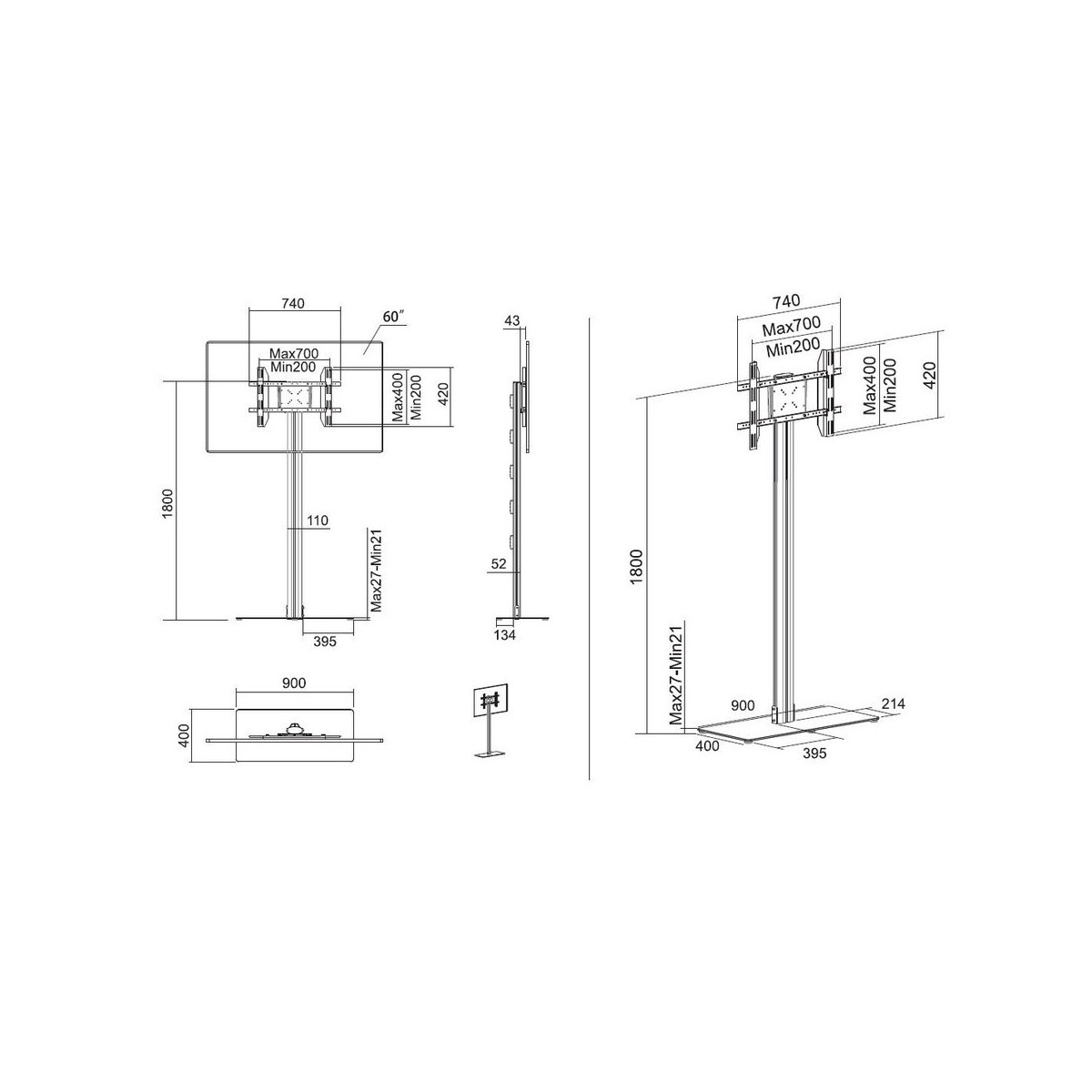 | Compatibilità interfaccia di montaggio (max) | 700 x 400 mm |