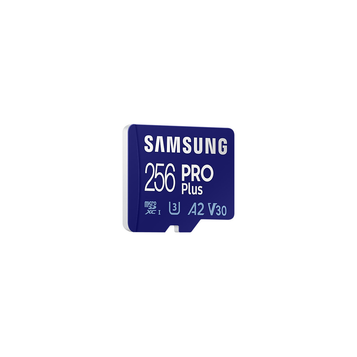 Samsung PRO Plus. Capacità: 256 GB, Tipo flash card: MicroSDXC, Classe di memoria flash: Classe 10, Tipo di RAM: UHS-I, Velocità di lettura: 160 MB/s, Velocità di scrittura: 120 MB/s, Classe di velocità UHS: Class 3 (U3), Classe di velocità video: V30. Funzioni di protezione: Resistente all'abrasione, A prova di magnete, Resistente agli urti, A prova di temperatura,..., Colore del prodotto: Blu