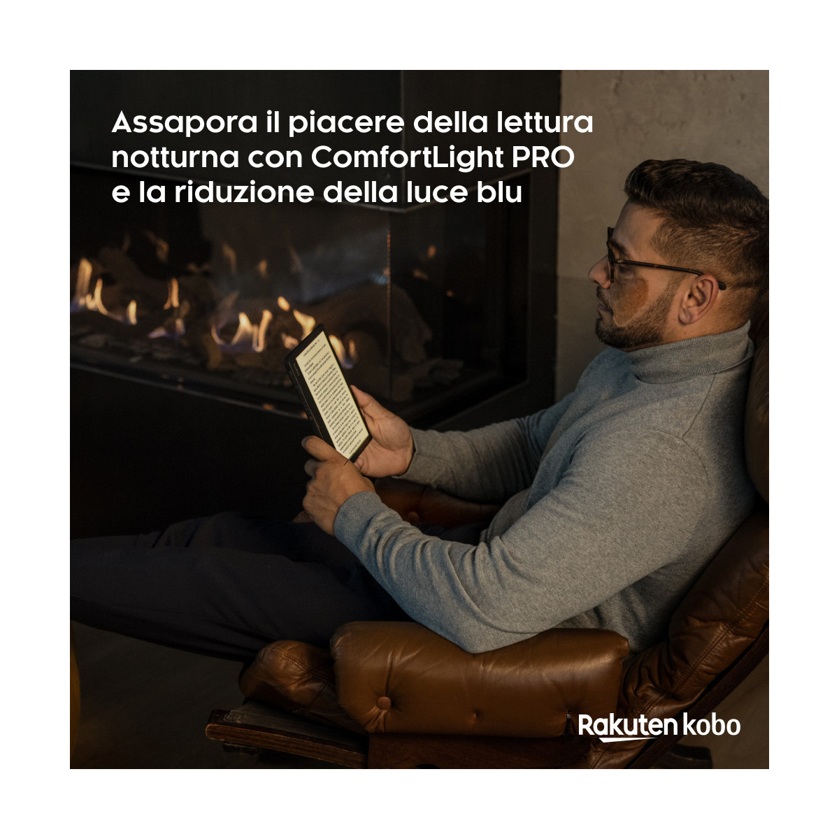 L’incredibile display di Kobo Sage con ComfortLight PRO, permette di regolare la luminosità e la luce blu in modo da non affaticare gli occhi, per goderti la lettura fino a tardi senza compromettere il sonno.