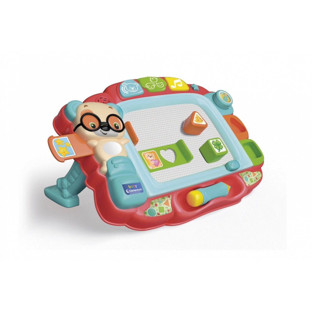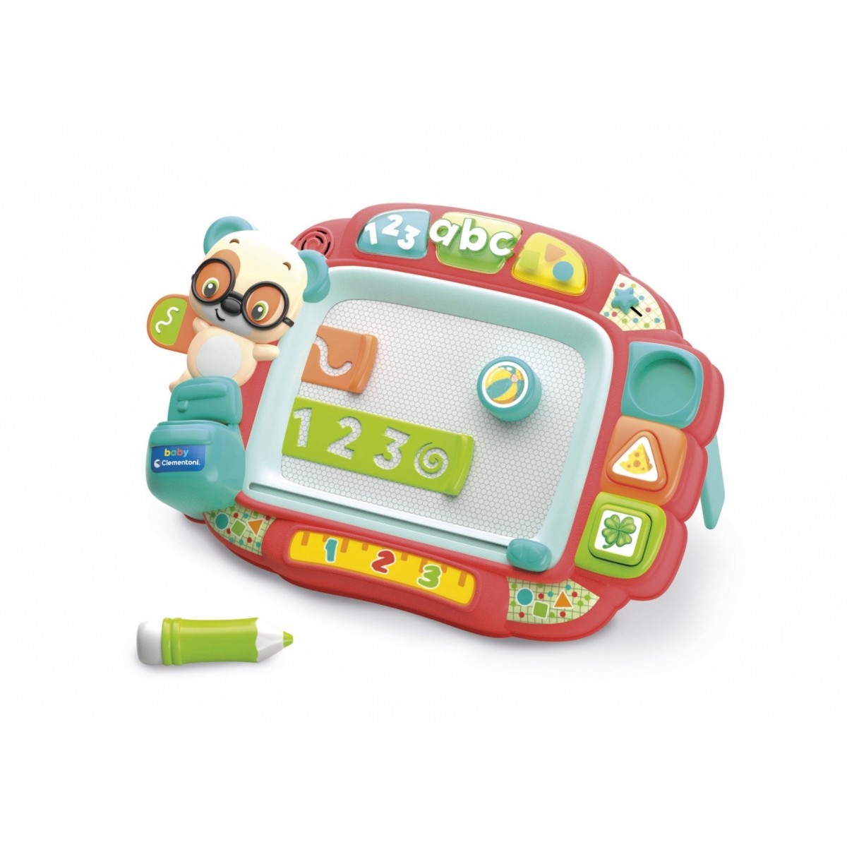 The buttons activate music and content designed to encourage the discovery of the first letters, the first numbers and shapes, guiding the child in engaging and interactive play experiences.