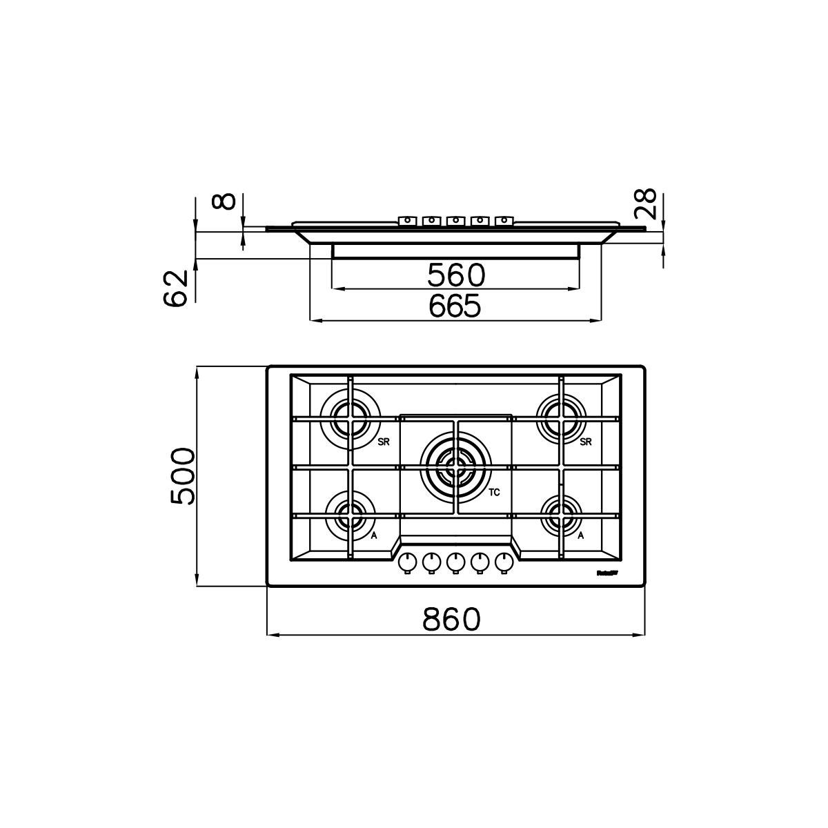 | Numero di fornelli a gas | 5 Fornello(i) |