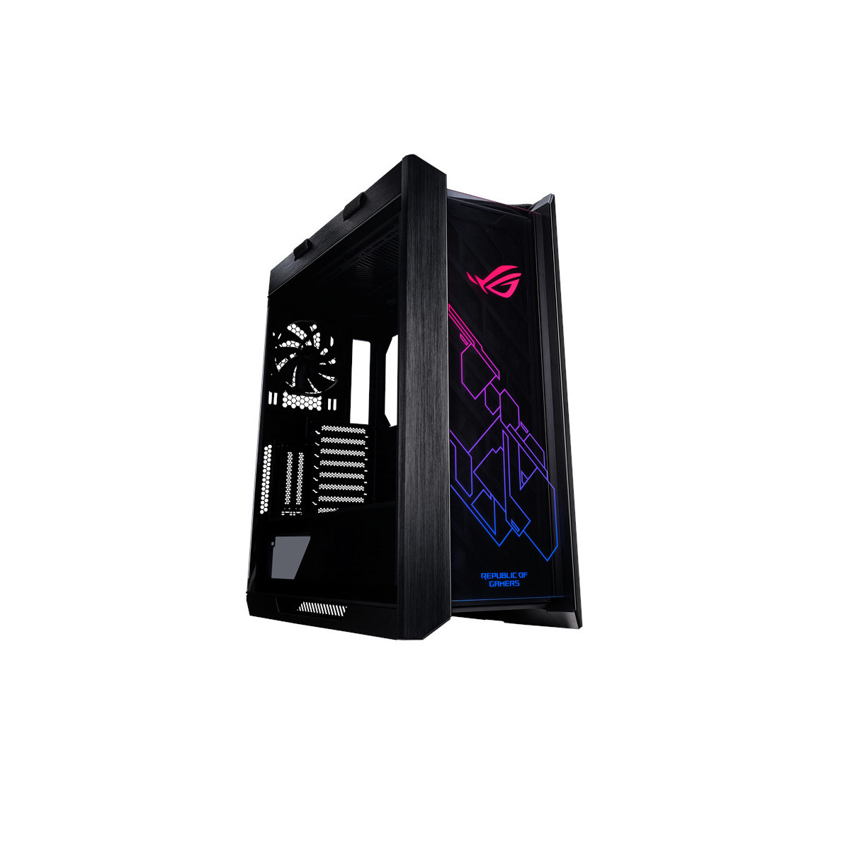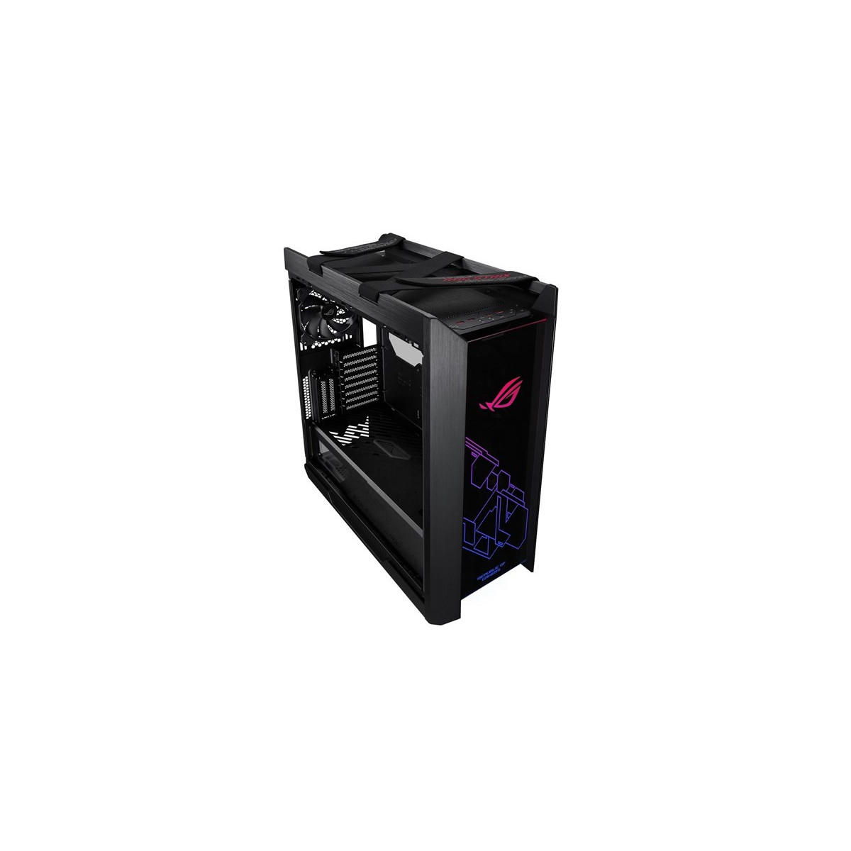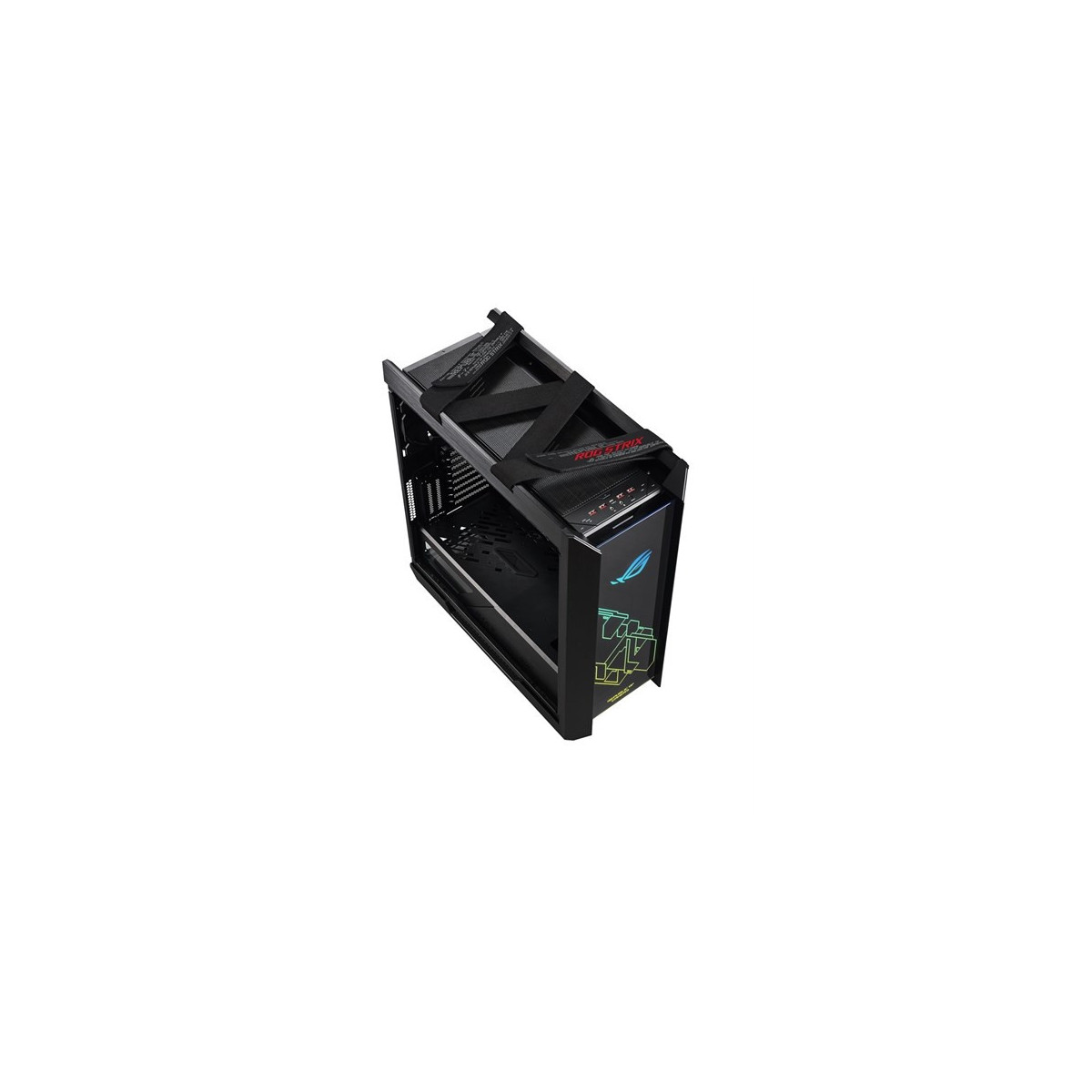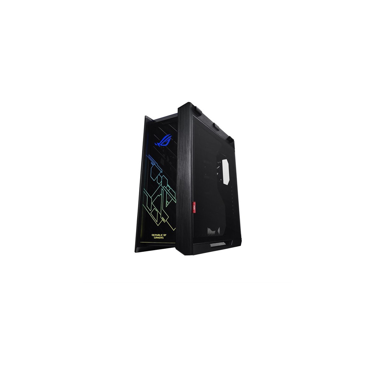 ASUS GX601. Fattore di forma: Midi Tower, Tipo: PC, Materiali: Alluminio. Posizione alimentazione: Fondo. Ventole anteriori installate: 3x 140 mm, Diametro delle ventole frontali supportato: 120,140 mm, Rear fans installed: 1x 140 mm. Dimensioni di hard disk drive supportati: 2.5,3.5". Larghezza: 250 mm, Profondità: 565 mm, Altezza: 591 mm