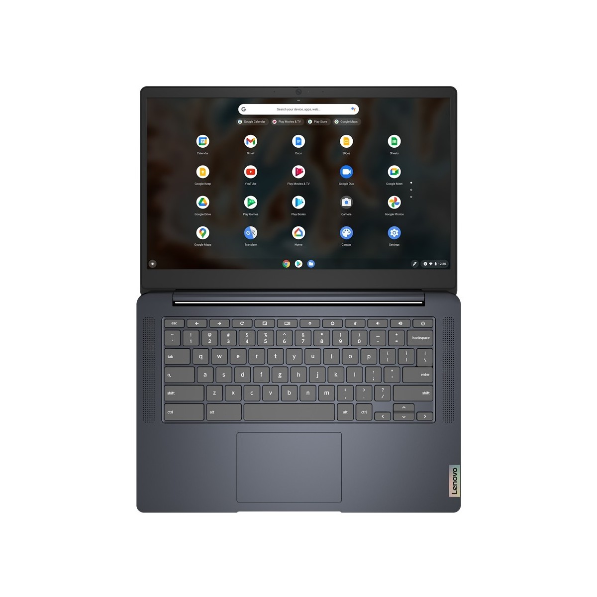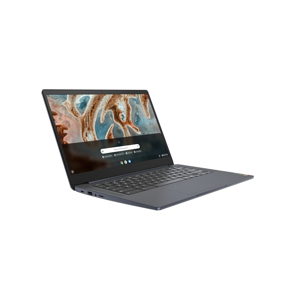 Lenovo IdeaPad 3. Tipo di prodotto: Chromebook, Fattore di forma: Clamshell. Famiglia processore: MediaTek, Modello del processore: MT8183, Frequenza del processore: 2 GHz. Dimensioni schermo: 35,6 cm (14"), Tipologia HD: Full HD, Risoluzione del display: 1920 x 1080 Pixel. RAM installata: 8 GB, Tipo di RAM: LPDDR4x-SDRAM. Capacità totale di archiviazione: 64 GB, Supporto di memoria: eMMC. Modello scheda grafica integrata: ARM Mali-G72 MP3. Sistema operativo incluso: Chrome OS. Colore del prodotto: Blu