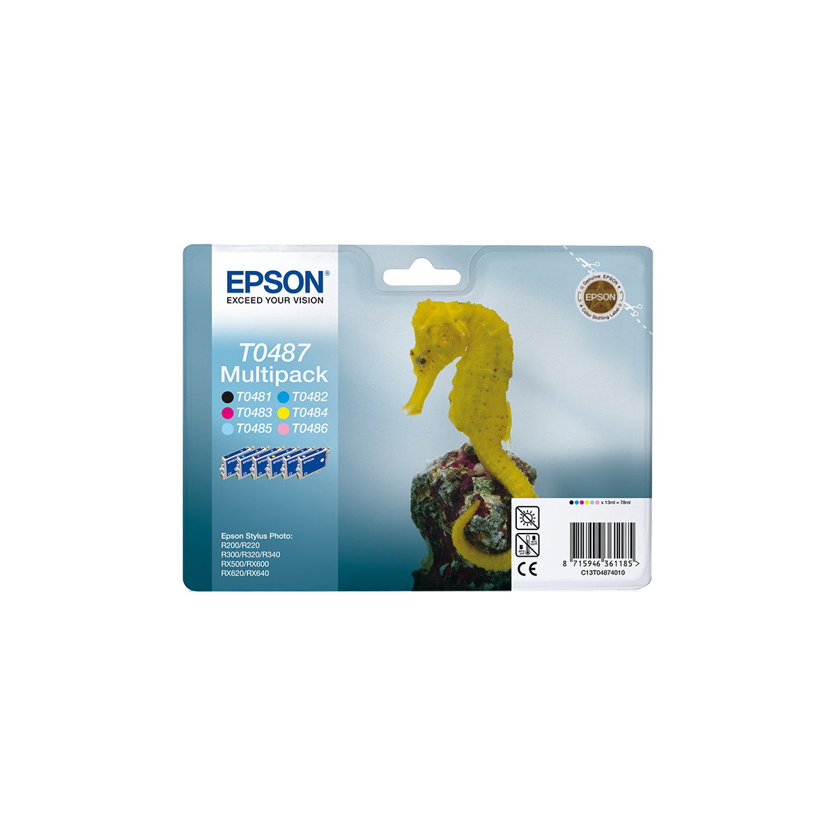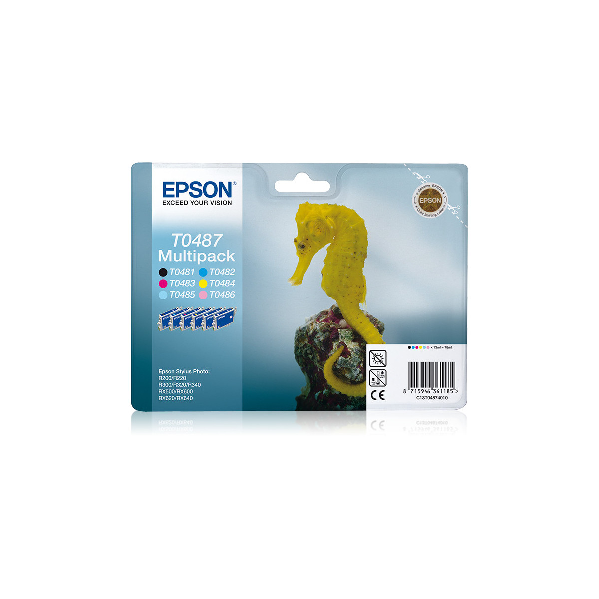 MultiPack T0487, contenente n.6 cartucce : Nero(T048140), Ciano(T048240), Magenta(T048340), Giallo(T048440), Ciano-chiaro(T048540), Magenta-chiaro(T048650), in confezione blister RS.