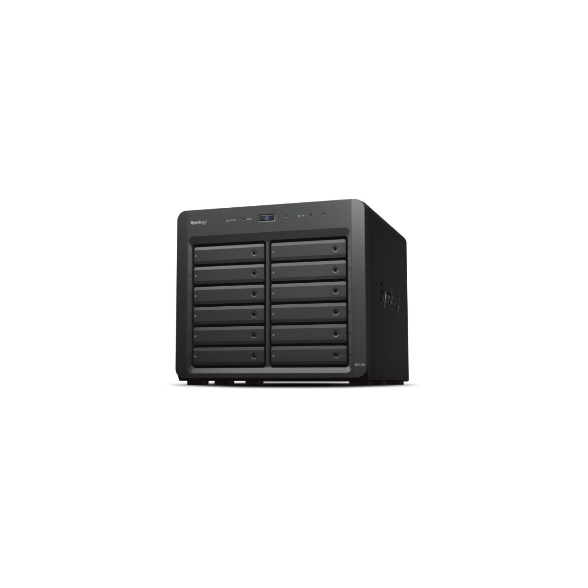 Synology DX1222. Tipo di prodotto: Box esterno HDD/SSD. numero di dispositivi di archivio supportati: 12, Dimensione del dispositivo di archiviazione: 2.5/3.5", Interfacce dell'unità di archiviazione supportate: SATA, Seriale ATA II, Serial ATA III, Capacità massima di memoria: 192 TB, Hot-swap. Colore del prodotto: Nero