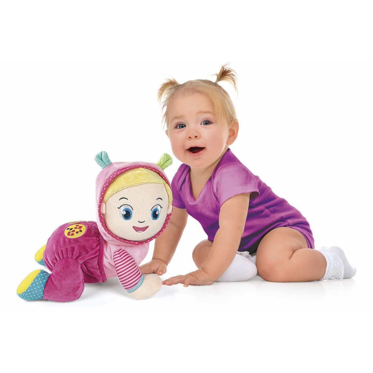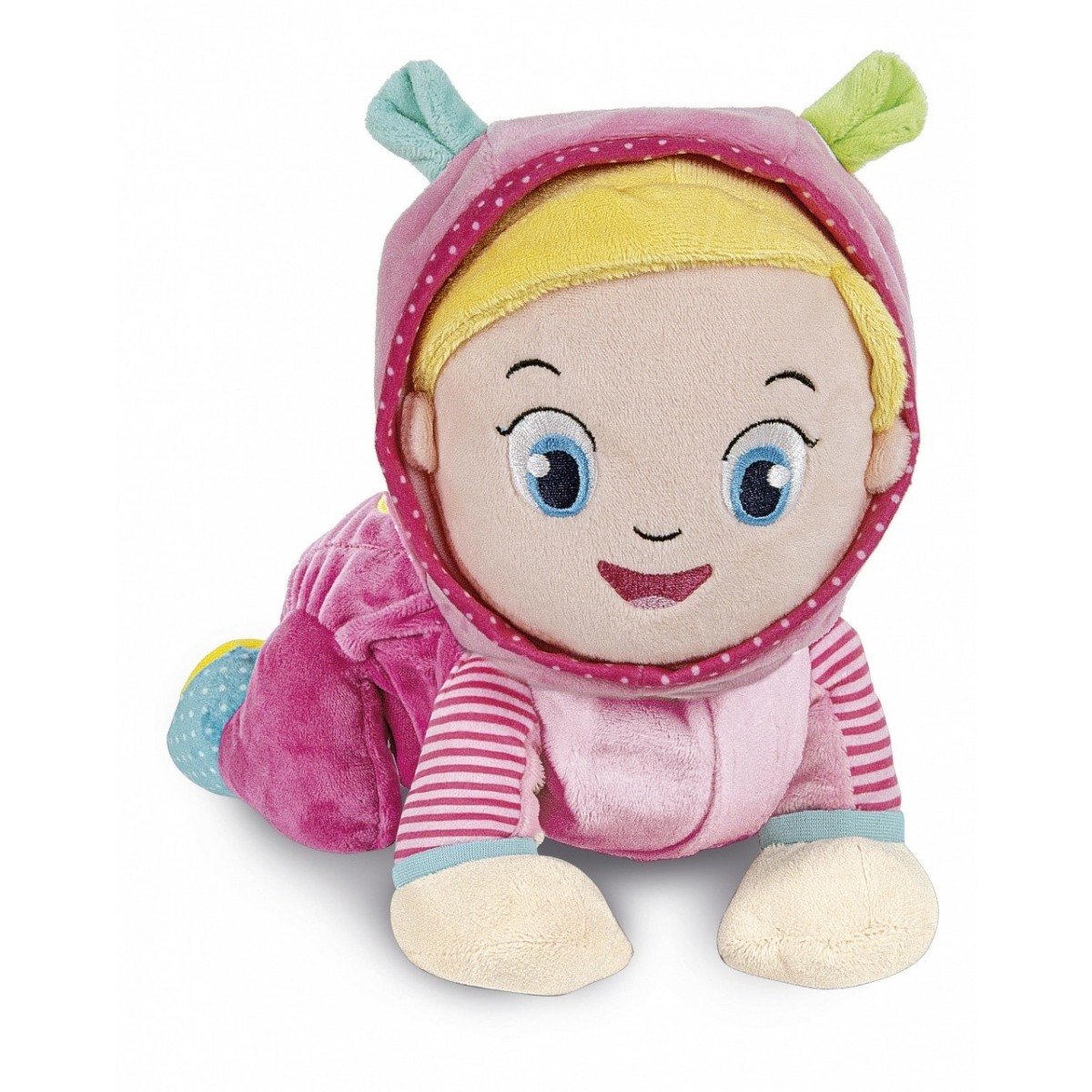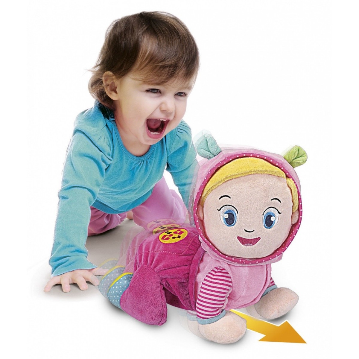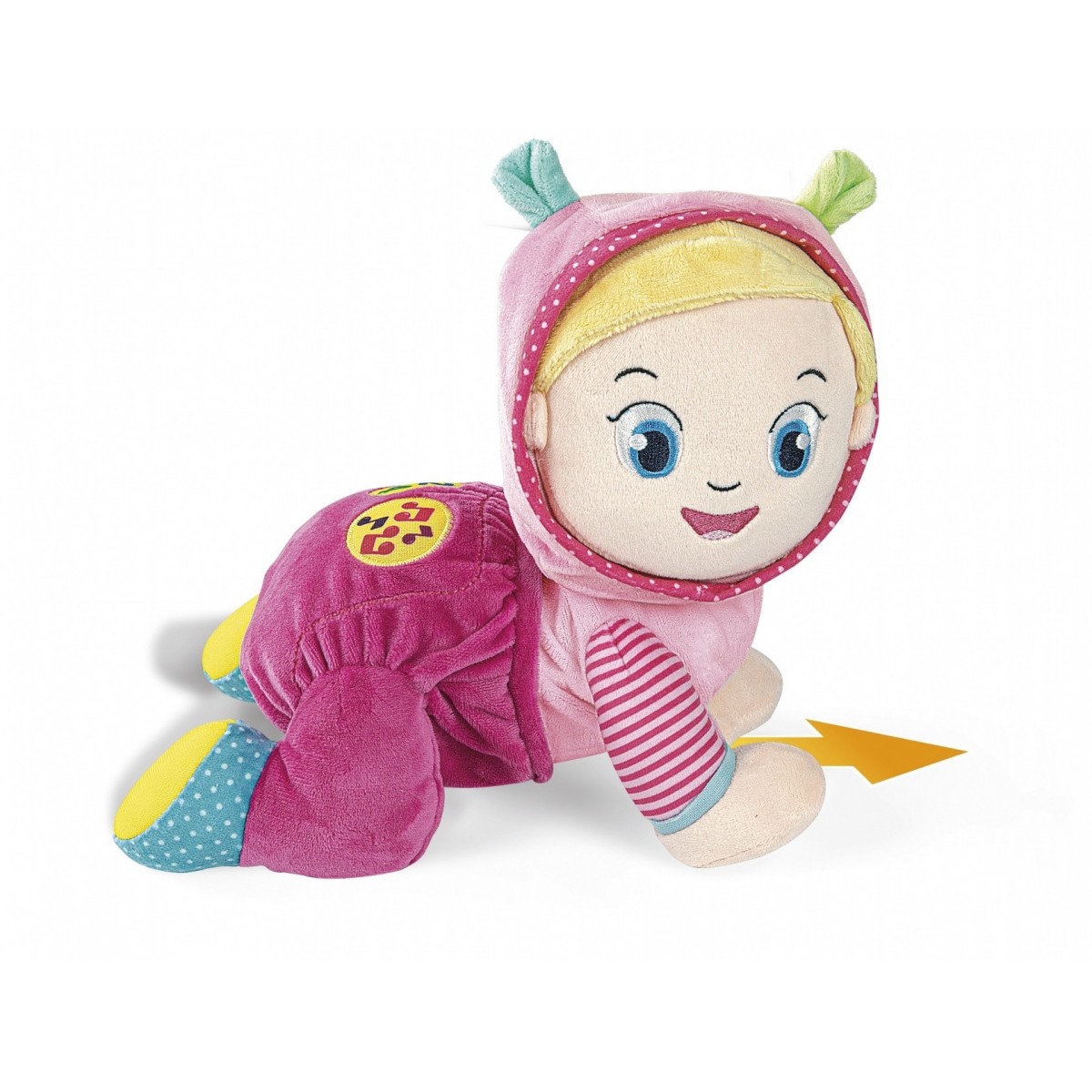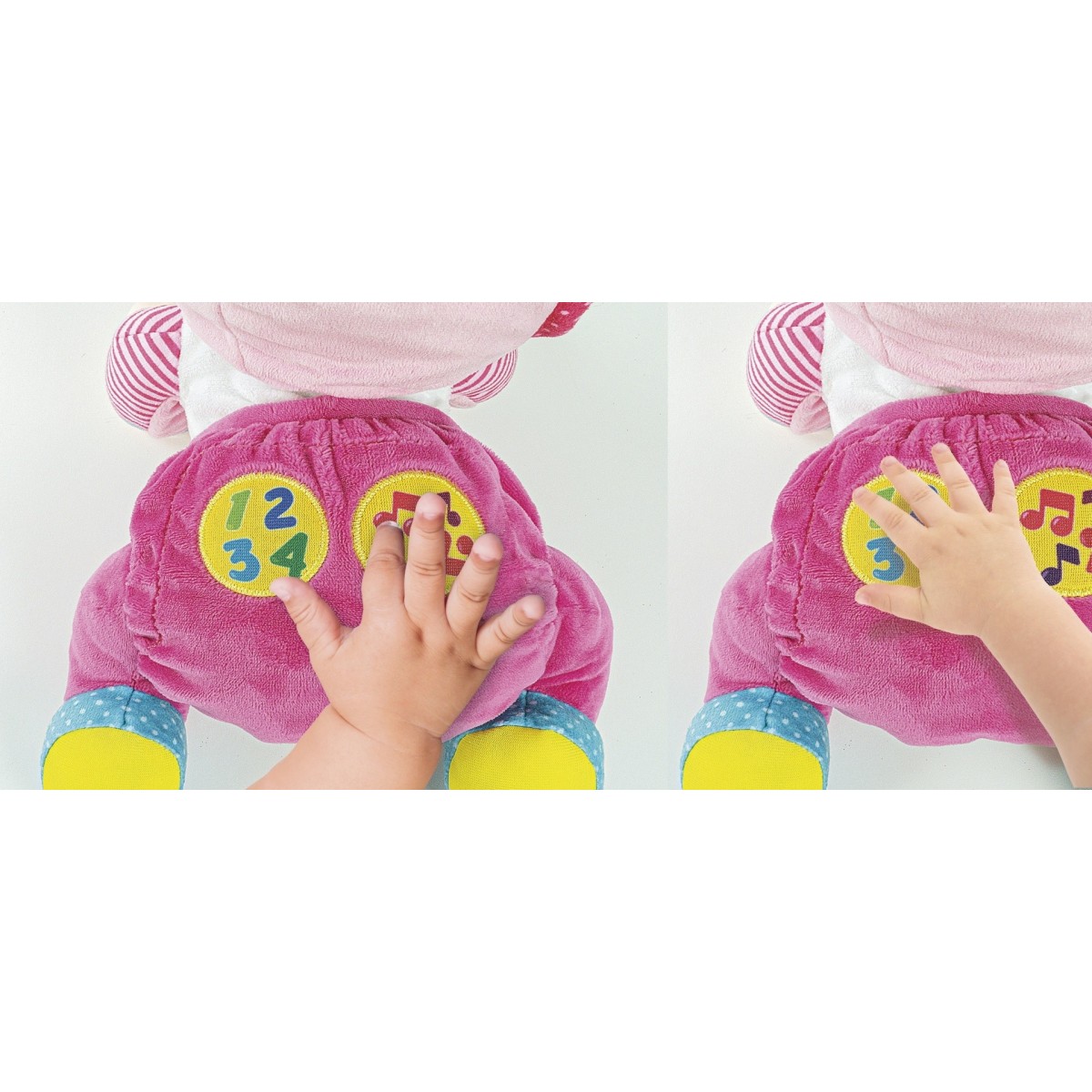 Questo tenero peluche gattonante è anche un centro attività con melodie, numeri e versi degli animali attivabili grazie a due tastoni interattivi, per rendere il gioco più divertente e coinvolgente.