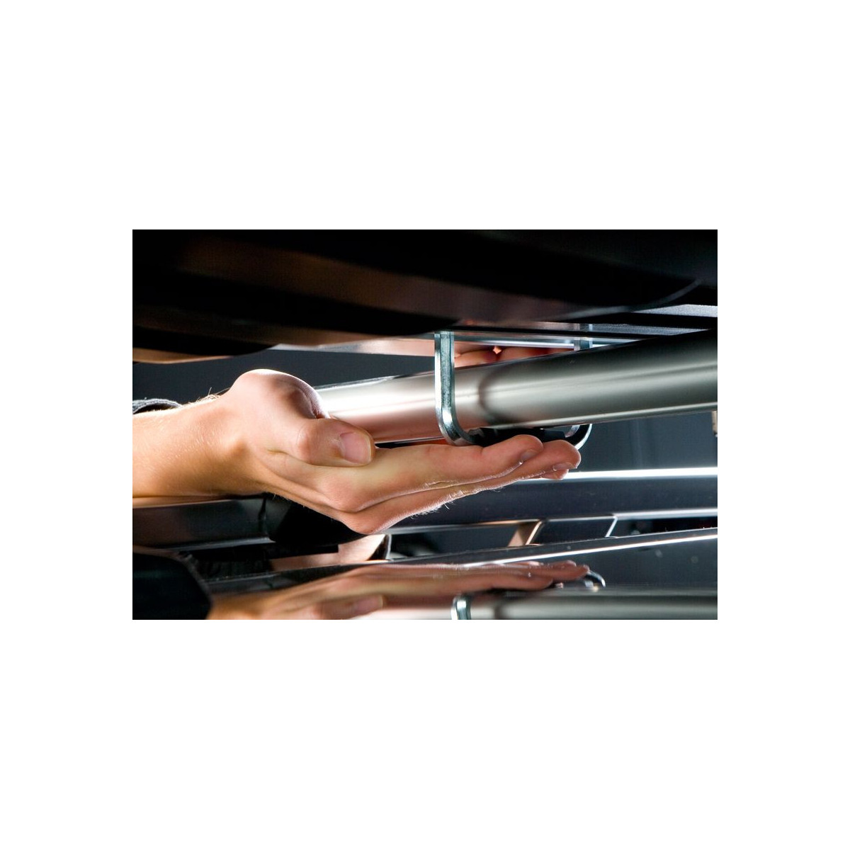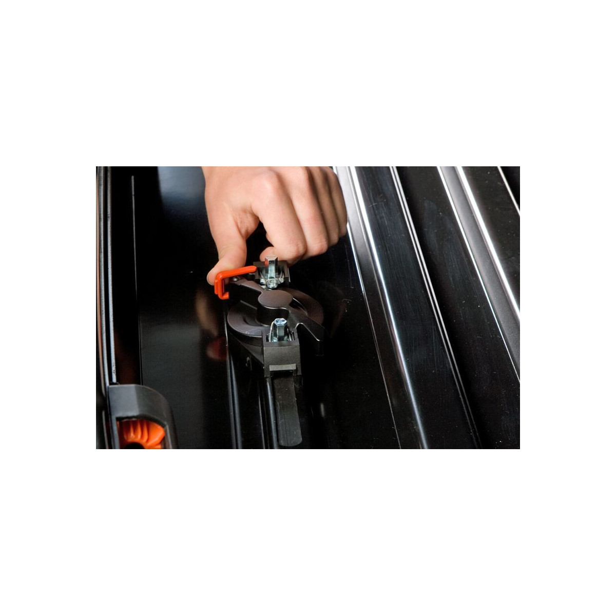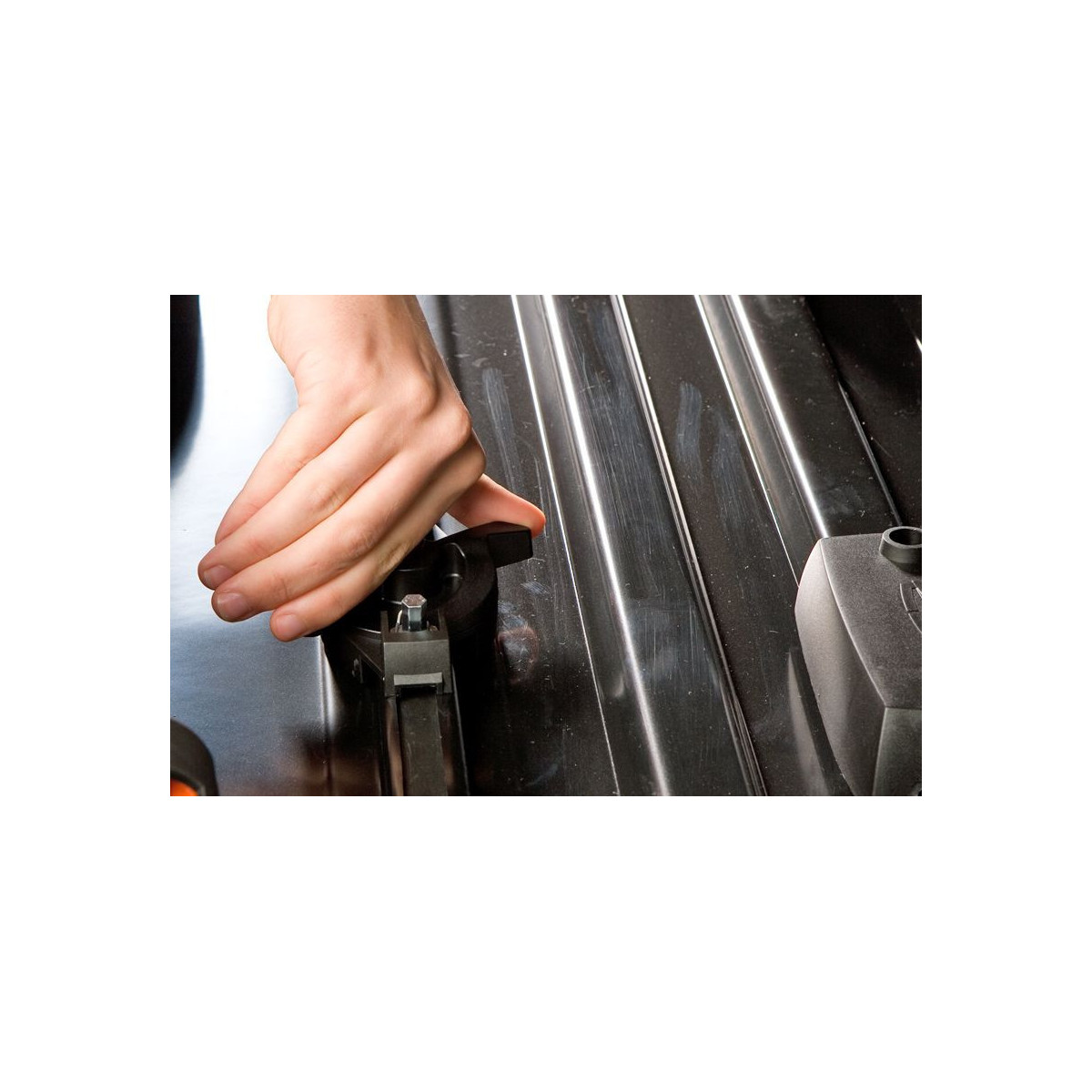 L’intera serie Rider di Hapro è dotata del sistema di fissaggio Easy-fit, comodo da azionare. Grazie a questo sistema ci vogliono meno di 2 minuti per montare il Rider 6.4 sulle barre della vostra automobile. Il sistema prevede il montaggio sulle barre mediante 4 ganci attaccati al fondo del portasci. Quando sentite il clic, vuol dire che il box è ancorato saldamente. Potrete subito caricare i vostri bagagli e mettervi in viaggio!