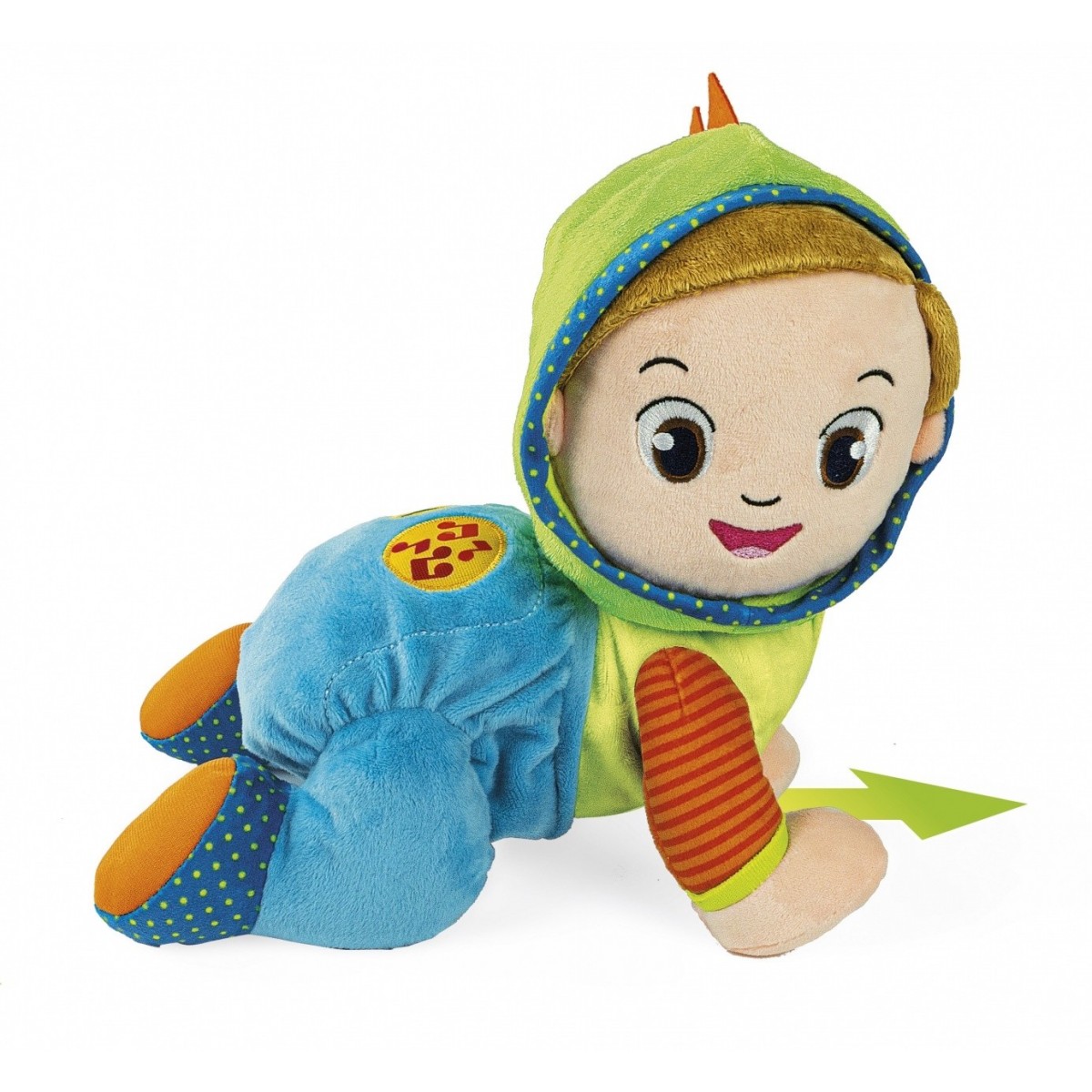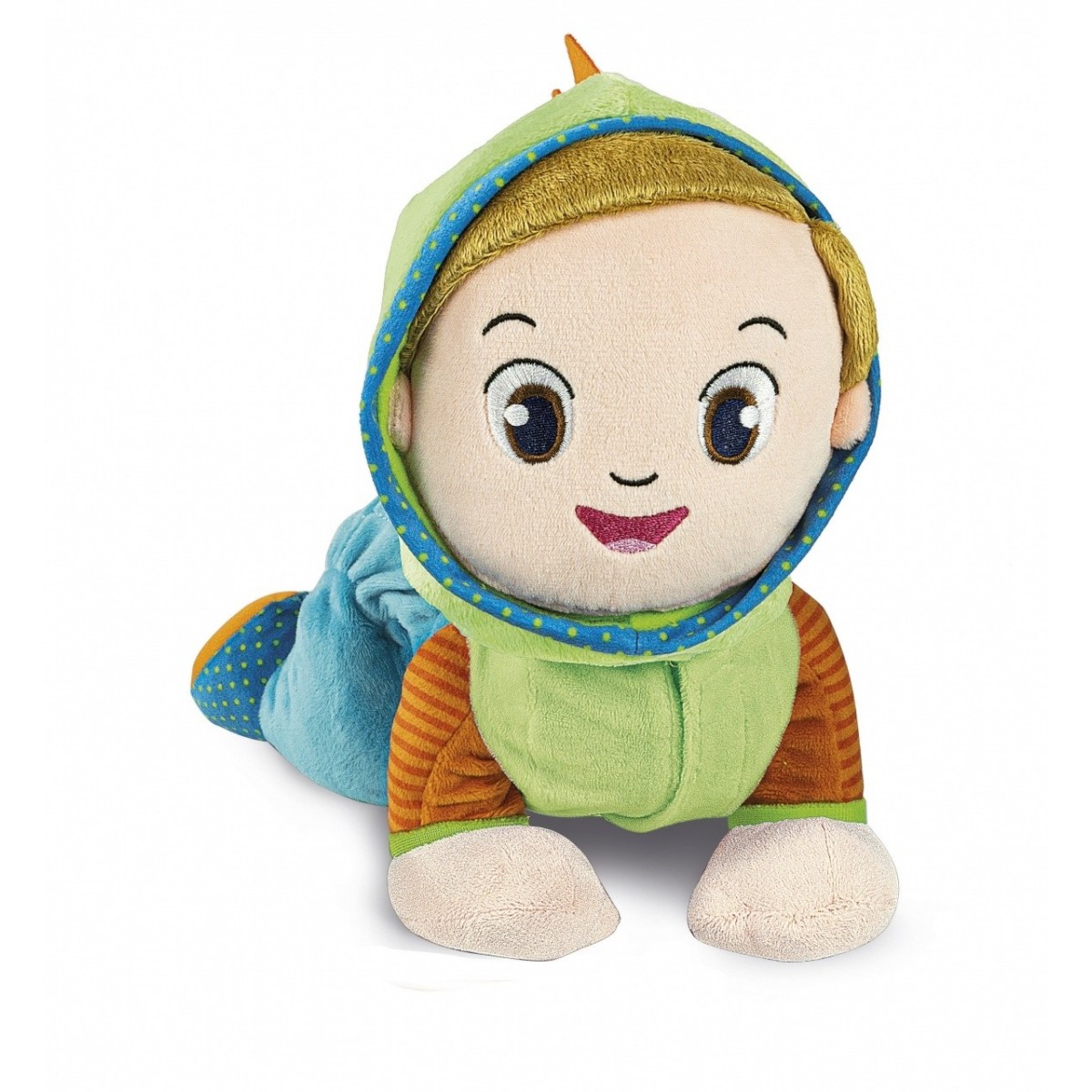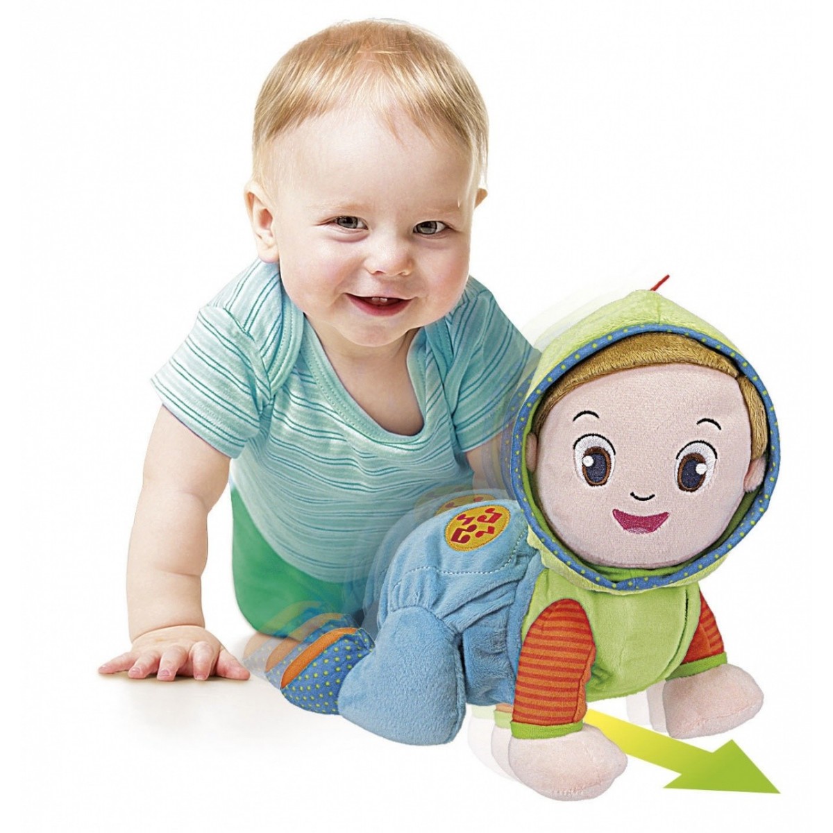 Gattona davvero e aiuta il bambino a sviluppare le capacità motorie, invitandolo, con la voce e con il canto, a seguire i suoi movimenti.