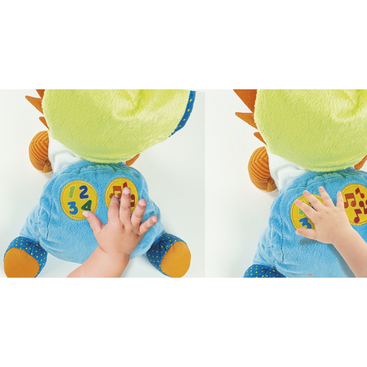 Questo tenero peluche è anche un centro attività con melodie e numeri attivabili grazie a due tastoni interattivi, per rendere il gioco più divertente e coinvolgente.