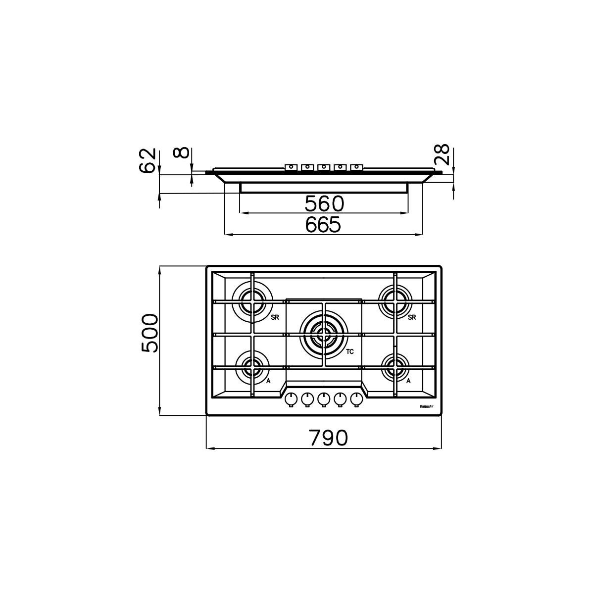 Foster 7602 032 - Piano Cottura a Gas KE Sopratop, Inox spazzolato, 79x50 cm