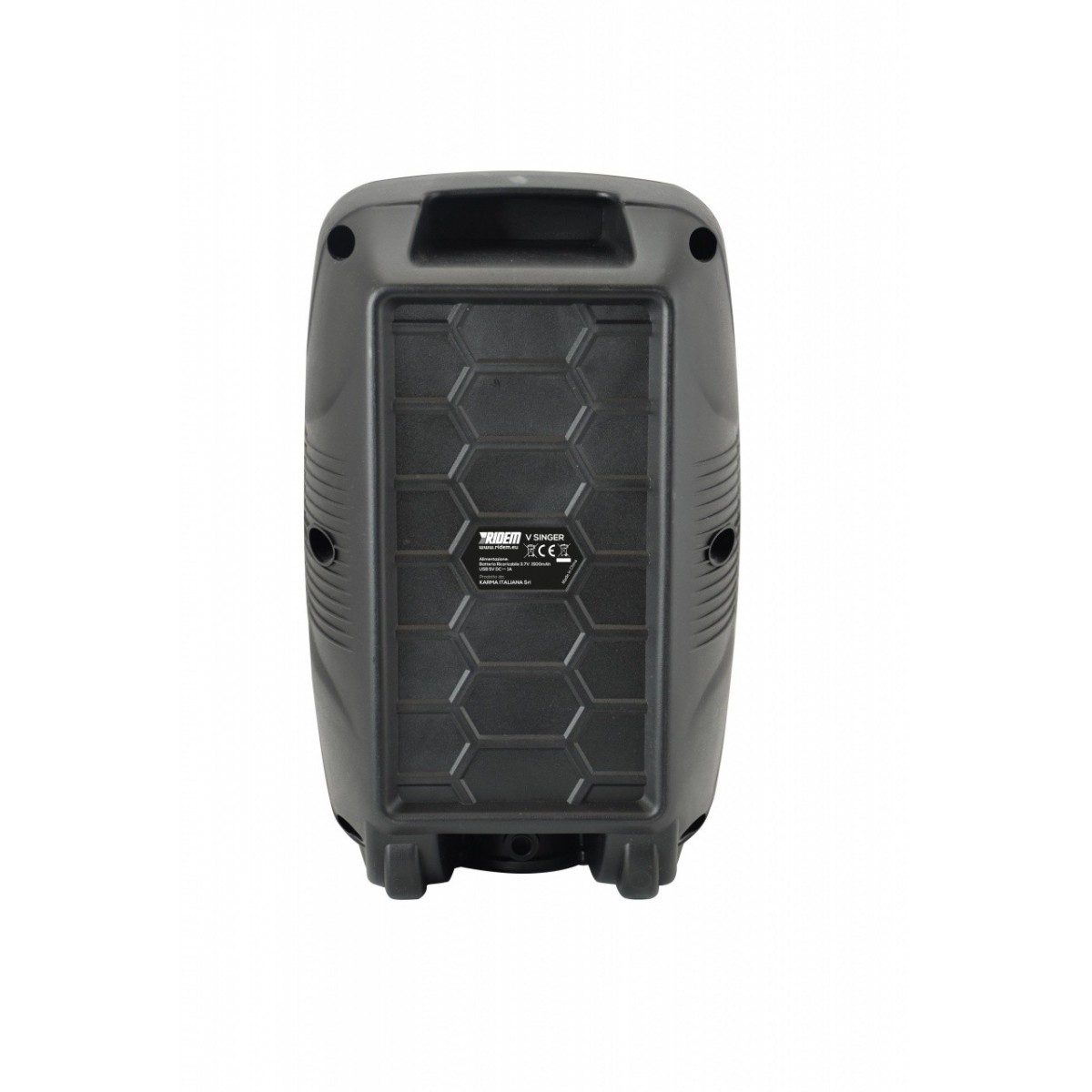 Karma Italiana V Singer. Potenza in uscita (RMS): 12 W, Range di frequenza: 20 - 18000 Hz, PMPO (Potenza musicale di picco): 100 W. Amplificatore: Da Incasso, Diametro del woofer: 16,5 cm (6.5"), Diametro del woofer: 16,3 cm. Tipo: Sistema PA indipendente, Colore del prodotto: Nero, Materiale della scocca: Acrilonitrile butadiene stirene (ABS). Controllo del volume: Manopola. Tecnologia di connessione: Con cavo e senza cavo, Tipi schede di memoria: MicroSD (TransFlash)
