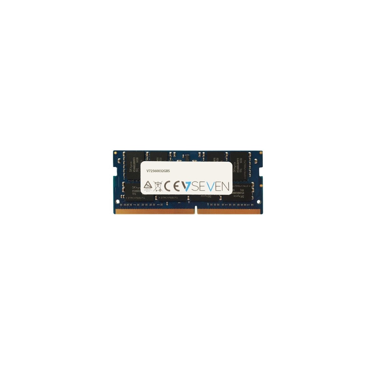 V7 V72560032GBS. Componente per: Computer portatile, RAM installata: 32 GB, Layout di memoria (moduli x dimensione): 1 x 32 GB, Tipo di RAM: DDR4, Velocità memoria: 3200 MHz, Fattore di forma memoria: 260-pin SO-DIMM