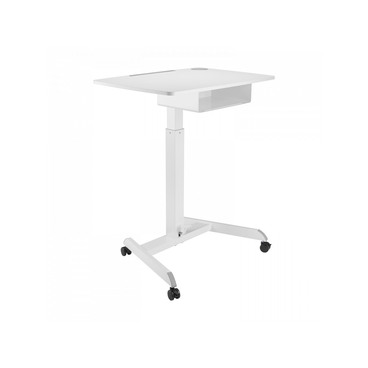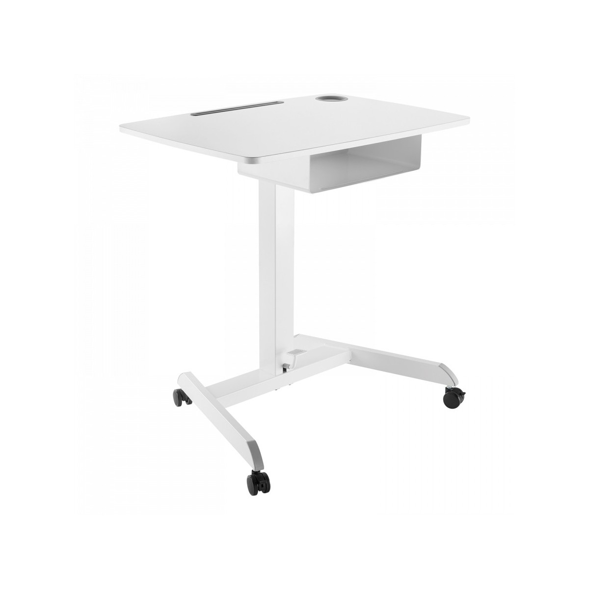 La scrivania regolabile in altezza con molla a gas DTM3SD di V7 è il modo più semplice per garantire la massima ergonomia in classe o in sala riunioni. È caratterizzata da un'ampia e resistente area di lavoro ed è facilmente regolabile in altezza fino a 112 cm (44 pollici). È dotata anche di uno scaffale aperto con spazio a sufficienza per riporre libri o materiali per l'ufficio. Inoltre, offre un supporto per tazza incassato e una scanalatura nella parte superiore per supportare facilmente tantissimi modelli di tablet e dispositivi mobili.