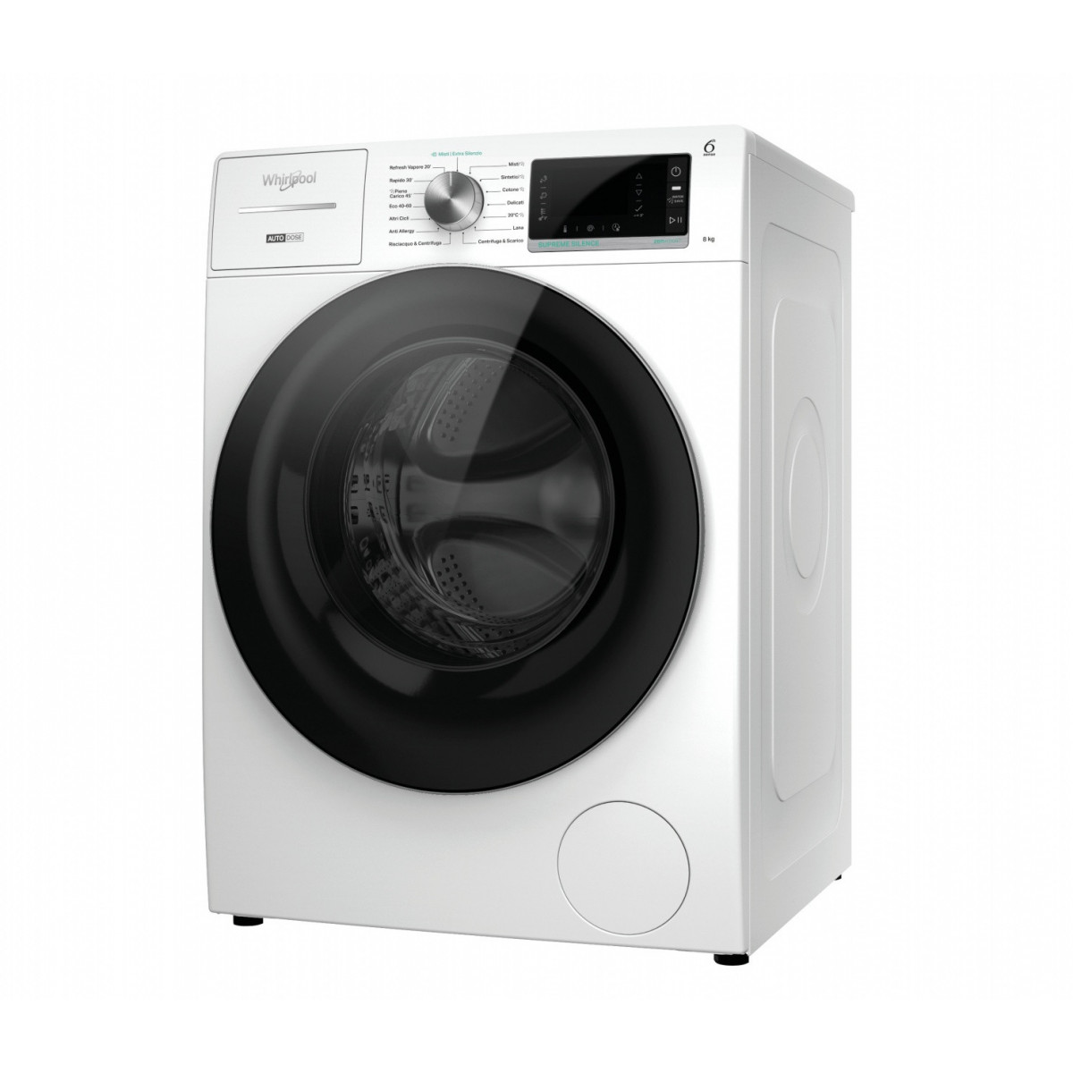 Whirlpool W8W846WR IT. Tipo di carica: Caricamento frontale. Capacità cestello: 8 kg, Classe di efficienza della centrifuga: B, Velocità di centrifuga massima: 1400 Giri/min. Colore del prodotto: Bianco. Larghezza: 599 mm, Profondità: 607 mm, Altezza: 845 mm. Classe efficienza energetica: A