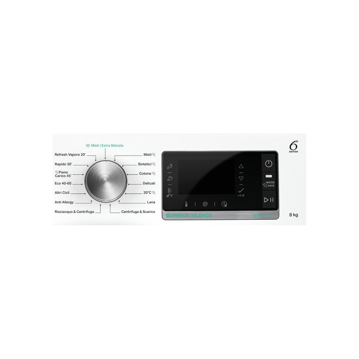 I sensori intelligenti 6 ° SENSO adattano le risorse in base alle dimensioni e al tipo di carico, offrendo ottimizzazione di tempo, energia e acqua.