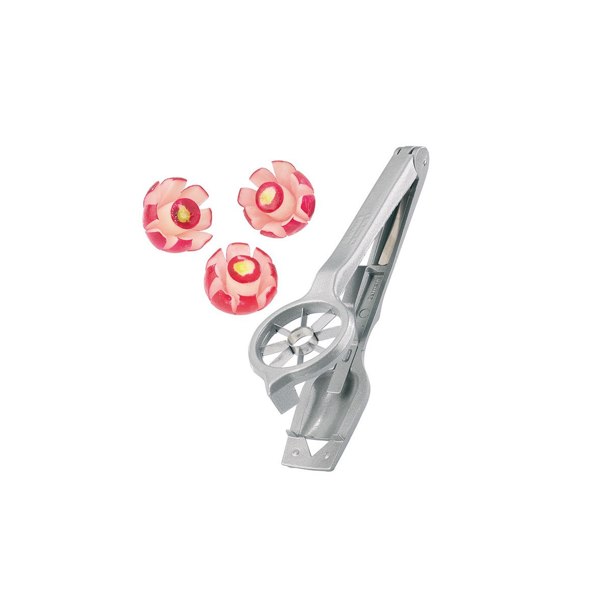 Taglia-verdure Decoretto in alluminio Pressofuso di pregiata qualità, con rivestimento specifico per alimenti lame Taglienti in acciaio inox Ideale per tagli decorativi di rapanelli, arance, limoni Lavabile in lavastoviglie