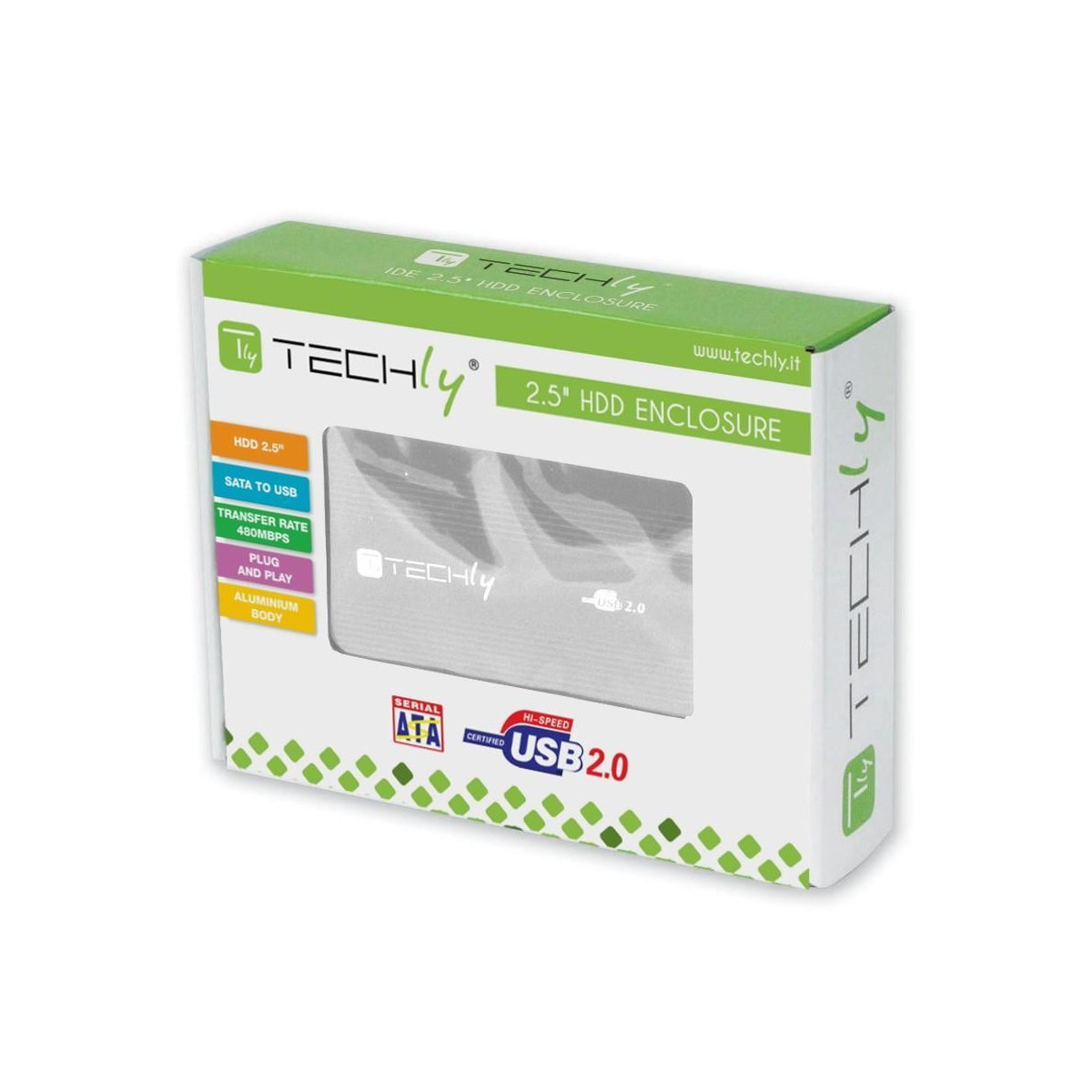 Techly I-CASE SU-25-WS. Tipo di prodotto: Box esterno HDD. numero di dispositivi di archivio supportati: 1, Dimensione del dispositivo di archiviazione: 2.5", Interfacce dell'unità di archiviazione supportate: SATA, Seriale ATA II. Velocità di trasferimento dati: 0,48 Gbit/s. Tipi di unità di archiviazione installate: HDD. Colore del prodotto: Argento. Connettore USB: USB tipo A