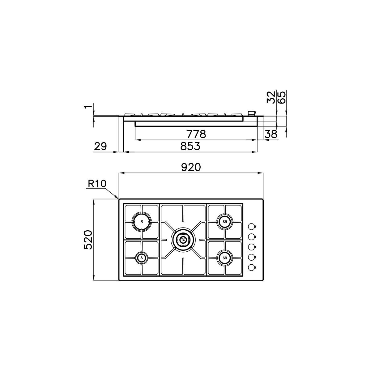 Foster 7271 032 - Piano Cottura a Gas S4000 Sopratop o Filotop, Inox spazzolato, 92x52 cm