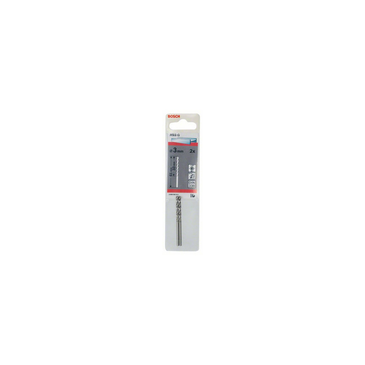 Bosch 2 608 585 911. Uso appropriato: Trapano, Tipo di punta per trapano: Punta per trapano elicoidale, Diamtro della punta del trapano: 3 mm. Numero di punte per trapano: 2 pz