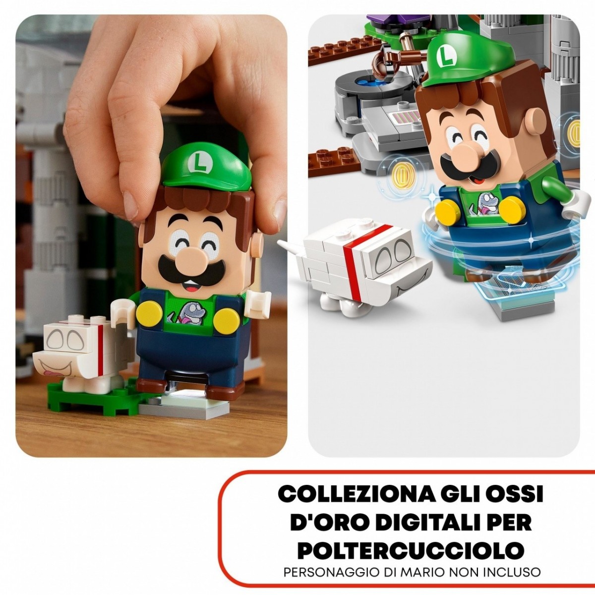 Il gioco modulare delle costruzioni LEGO Super Mario consente ai fan del videogame di espandere, ricostruire e creare livelli unici per ore di gioco collezionando monete, e i set Luigi's Mansion offrono enigmi da risolvere con LEGO Luigi come eroe. Queste avventure spettrali sono ancora più divertenti quando i membri della famiglia giocano in squadra e salgono di livello con il Poltergust (venduto separatamente nel set di mattoncini LEGO 71397) per sconfiggere i fantasmi. Giocattoli LEGO Super Mario da collezionare: i personaggi e i pack di espansione sono un regalo eccezionale da offrire ai bambini per un compleanni, Natale o altre occasioni. Dai un'occhiata all'app LEGO Super Mario per istruzioni di montaggio, idee e molto altro ancora.