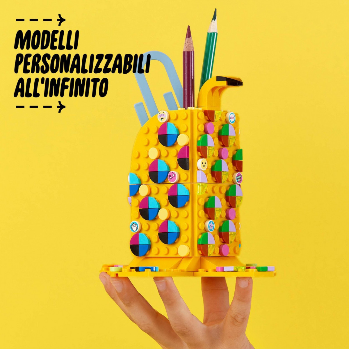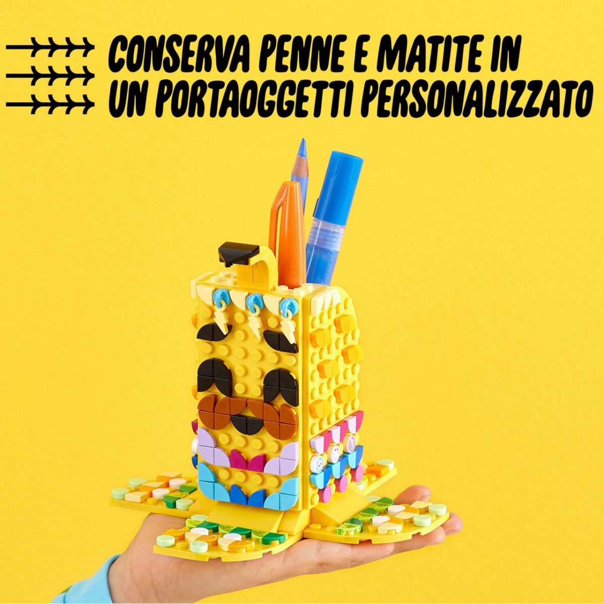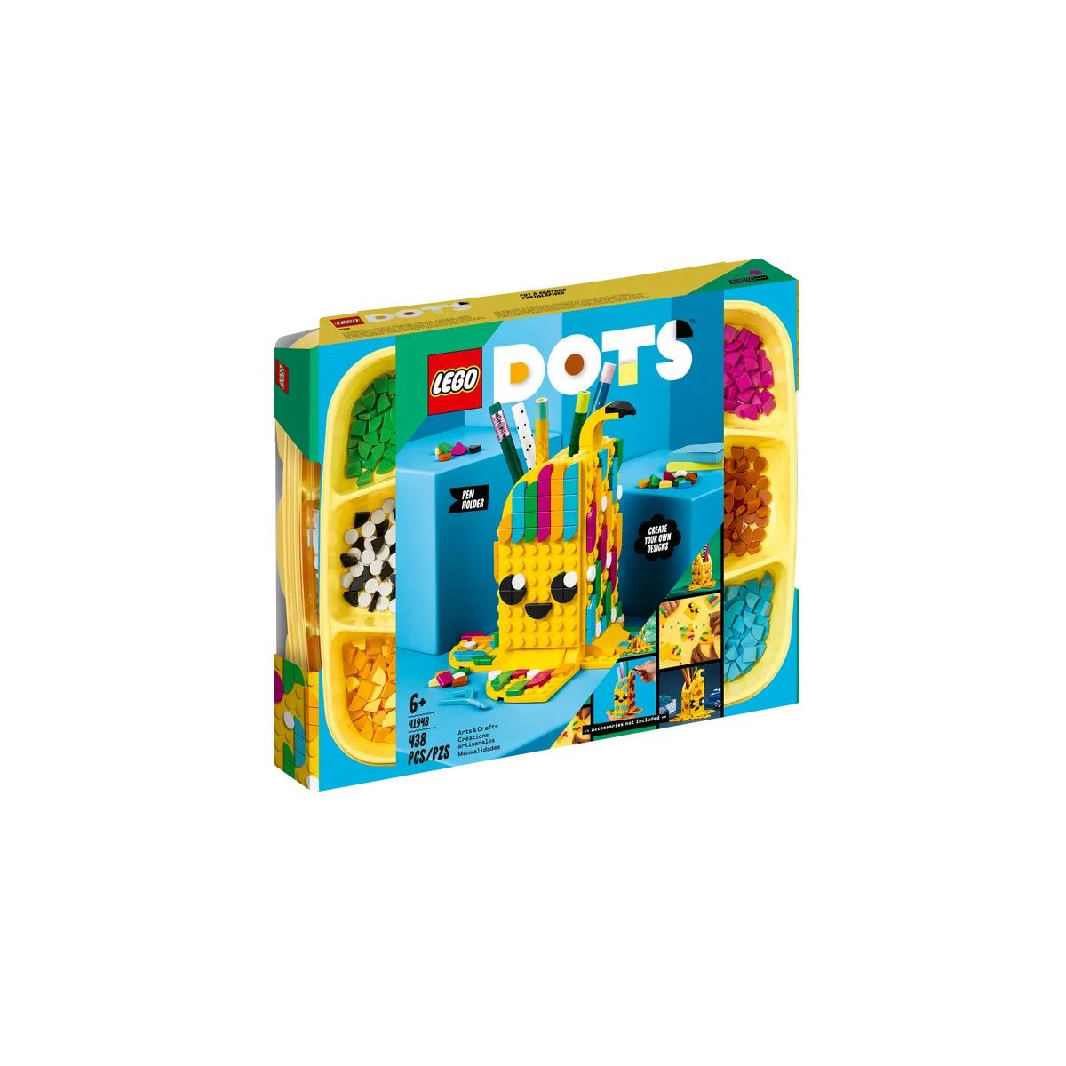 Soddisfa la passione dei tuoi bambini per le attività artistiche e manuali con il set di creazione per bambini: LEGO DOTS Simpatica Banana - Portapenne (41948). Questo portaoggetti da scrivania è facile da assemblare, grazie alle istruzioni incluse nella confezione. Contiene un portapenne giallo a forma di banana e tante tessere colorare per decorarlo. Facile da realizzare e personalizzare, questo accessorio per la cameretta include una tela bianca per offrire ai bambini nuove possibilità di auto-espressione. Perfetto per divertirsi ogni giorno attraverso la creazione di una decorazione per la cameretta, personalizzabile in base al proprio umore e alla propria personalità. Abbina la bustina Extra DOTS - Serie 6 (venduta separatamente) per ottenere tante nuove tessere e divertirti ancora di più!