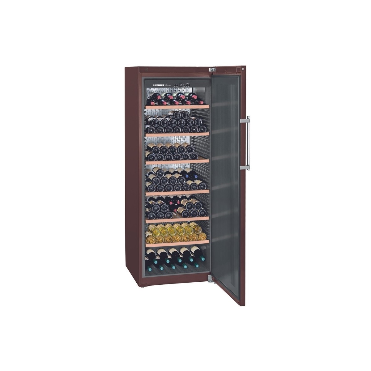 Liebherr WKT5551-22. Posizionamento dell'apparecchio: Libera installazione, Colore struttura: Terracotta, Colore interno: Acciaio inossidabile. Capacità bottiglie: 253 bottiglia/bottiglie, Intervallo temperatura (zona 1): 5 - 20 °C, Classe climatica: SN-T. Classe efficienza energetica: E, Consumo energetico annuo: 94 kWh, Scala di efficienza energetica: Da A a G. Tipo di display: LCD, Lunghezza cavo: 2 m. Paese di origine: Austria