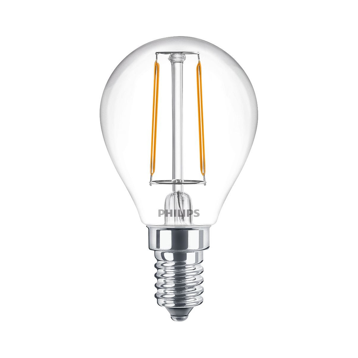 Philips Candle & Lustre. Potenza lampadina: 2 W, Lampadina di potenza equivalente: 25 W, Attacco lampada: E14, Flusso luminoso: 250 lm, Durata della lampadina: 15000 h, Colore della luce: Bianco caldo, Temperatura colore: 2700 K, Color Rendering Index (CRI): 80, Fattore di potenza: 0,41