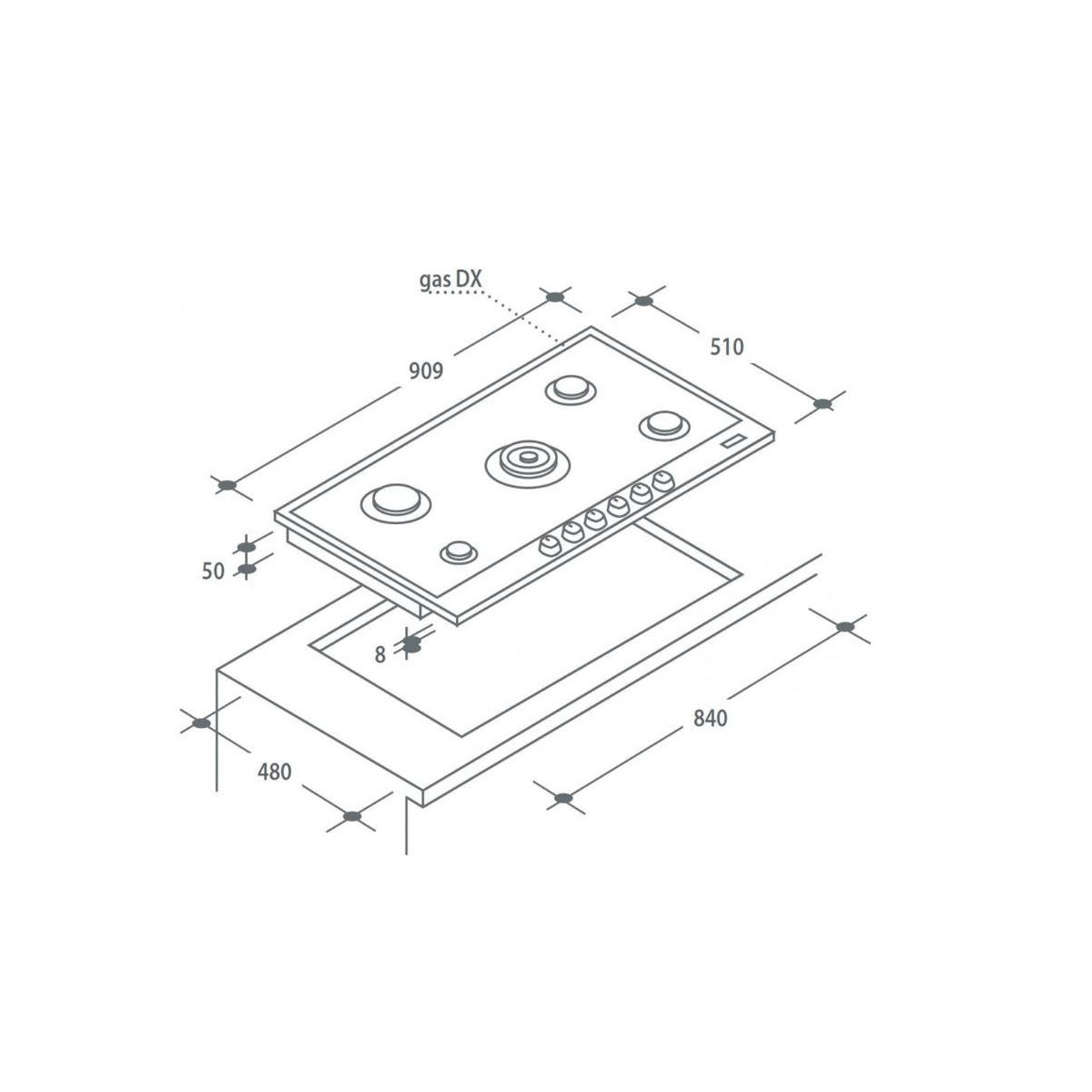 Candy PG953/1SX - Piano Cottura a Gas, 90 cm, 5 Fuochi, Inox