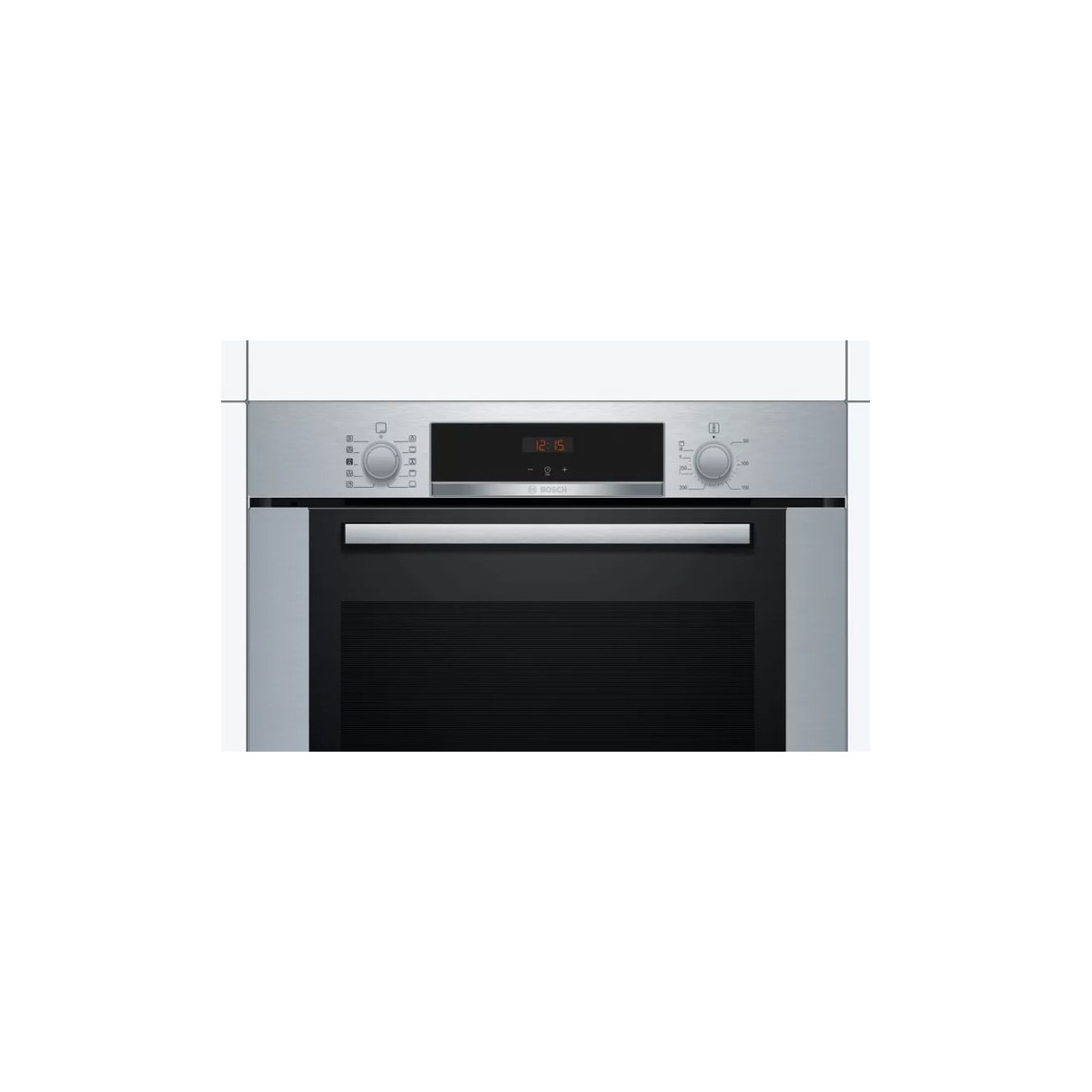 Bosch Serie 4 HRA314BR0. Dimensione del forno: Media, Tipo di forno: Forno elettrico, Capacità interna forno totale: 71 L. Posizionamento dell'apparecchio: Da incasso, Colore del prodotto: Acciaio, Tipo di controllo: Manopola, Touch. Modalità di impostazione del timer: Tempo di fine cottura. Classe efficienza energetica: A, Consumo energetico (convenzionale): 0,97 kWh, Consumo energetico (convezione forzata): 0,81 kWh. Quantità lampade: 1 lampada(e), Tipo di lampada: Alogena