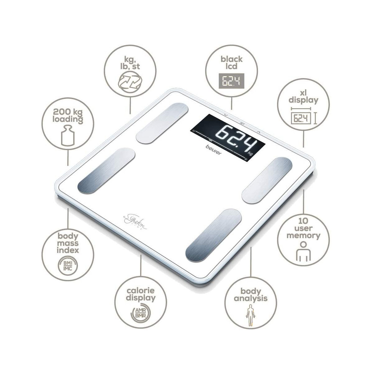 BF 400 Signature Line - Bilancia Pesapersone Diagnostica con Portata Max 200 kg, 31 x 31 cm, Bianca