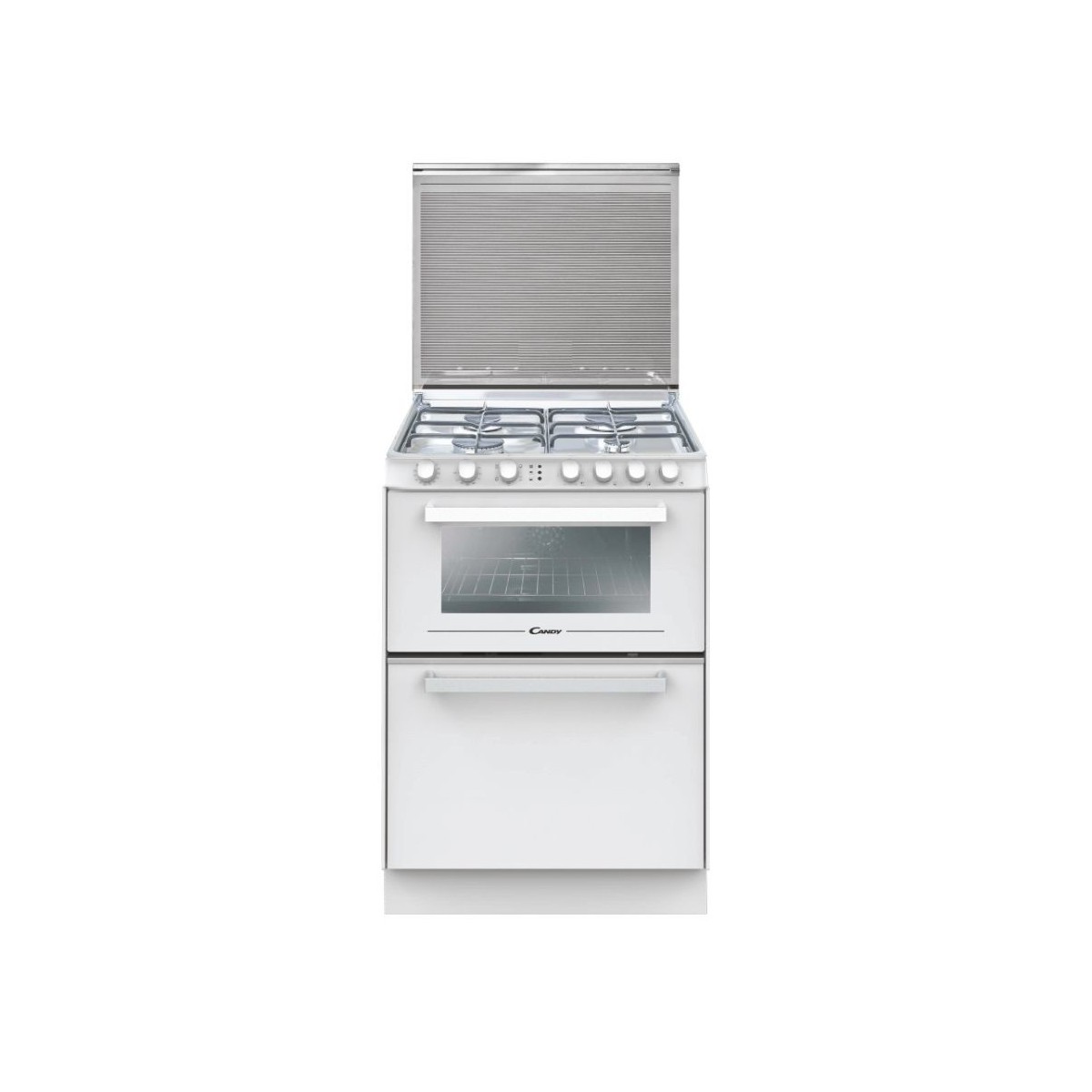 Candy Trio 4GWNT/1. Tipo di forno: Forno elettrico, Capacità netta del forno: 40 L, Potenza del forno: 2100 W. Tipo di piano cottura: Gas, Numero totale di fuochi: 4 Fornello(i). Numero di coperti: 6 coperti, Classe di efficienza energetica (lavastoviglie): F, Classe di emissione del rumore (lavastoviglie): D. Colore del prodotto: Bianco, Tipo di controllo: Manopola. Larghezza: 600 mm, Profondità: 600 mm, Altezza: 875 mm