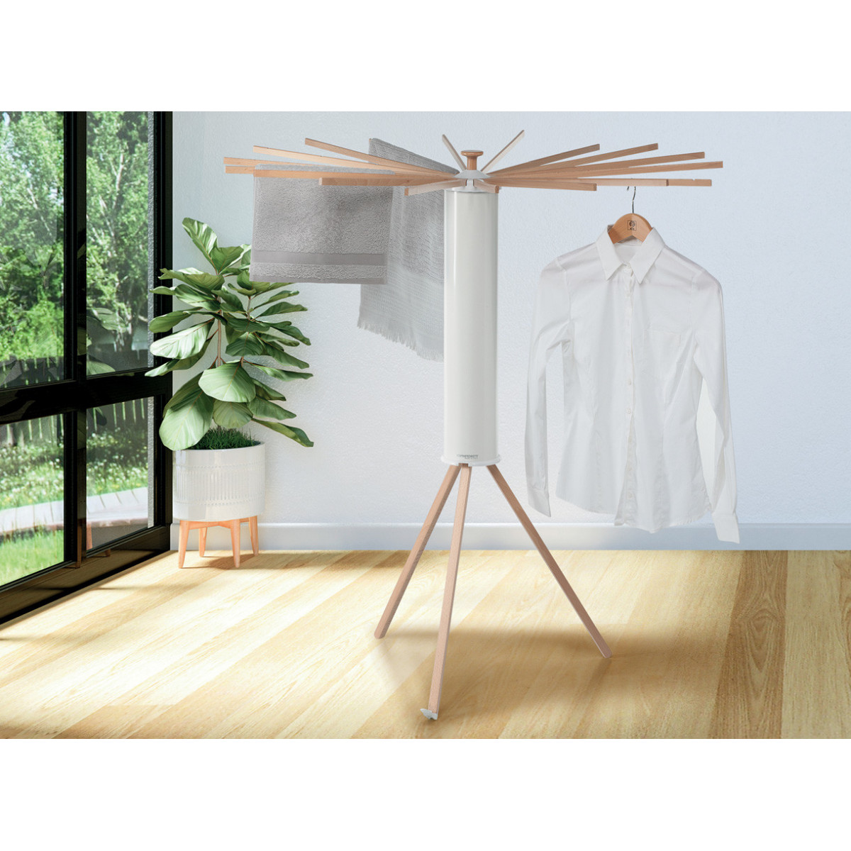 Stendibiancheria a raggio Octopus Naturale. Stendino a Raggiera con 18 Raggi Estraibili. Faggio Massiccio. Si poggia su tre gambe estraibili. Struttura leggera e stabile