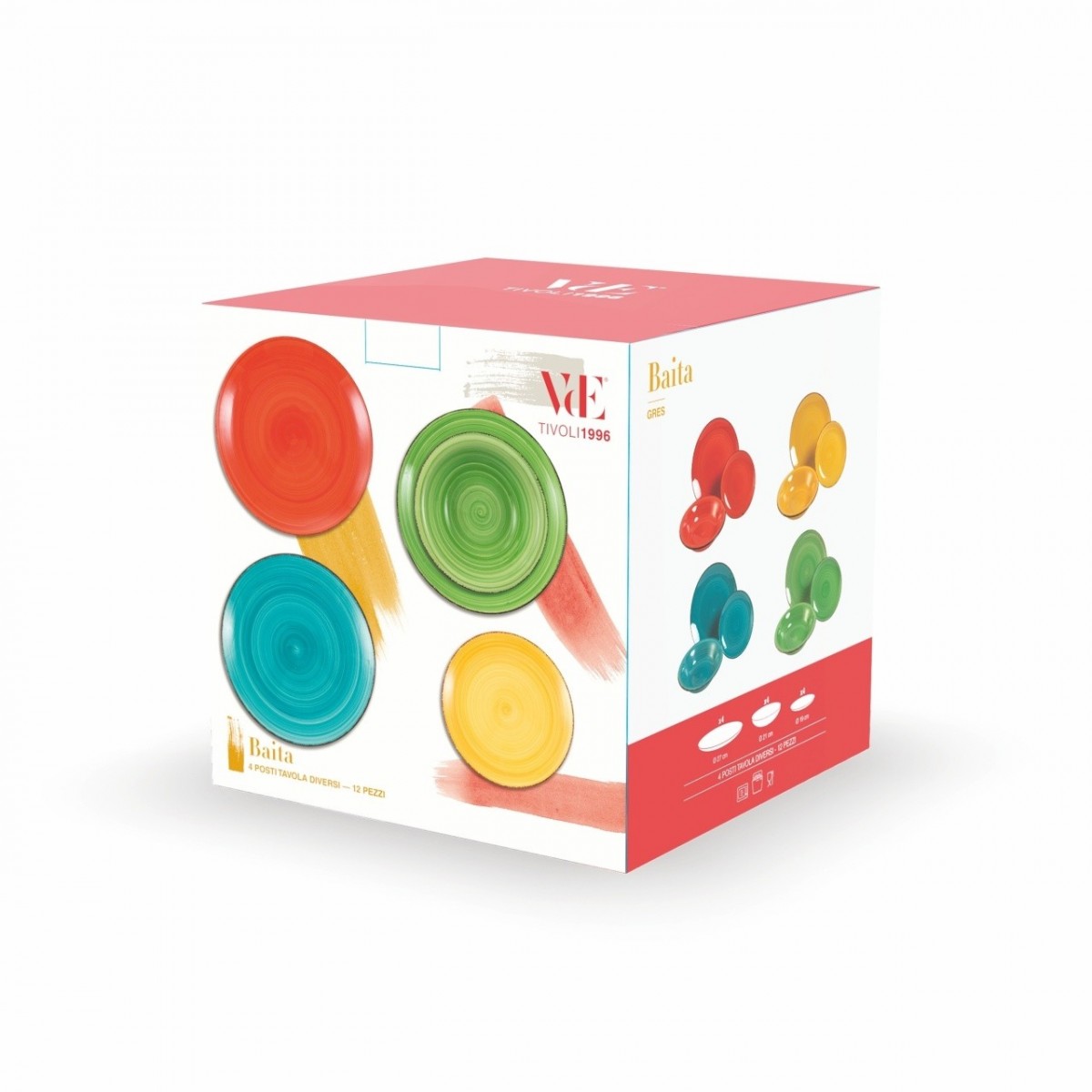 4 posti tavola in 4 diversi colori nella stessa confezione