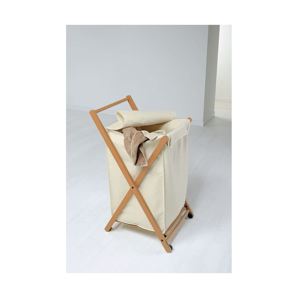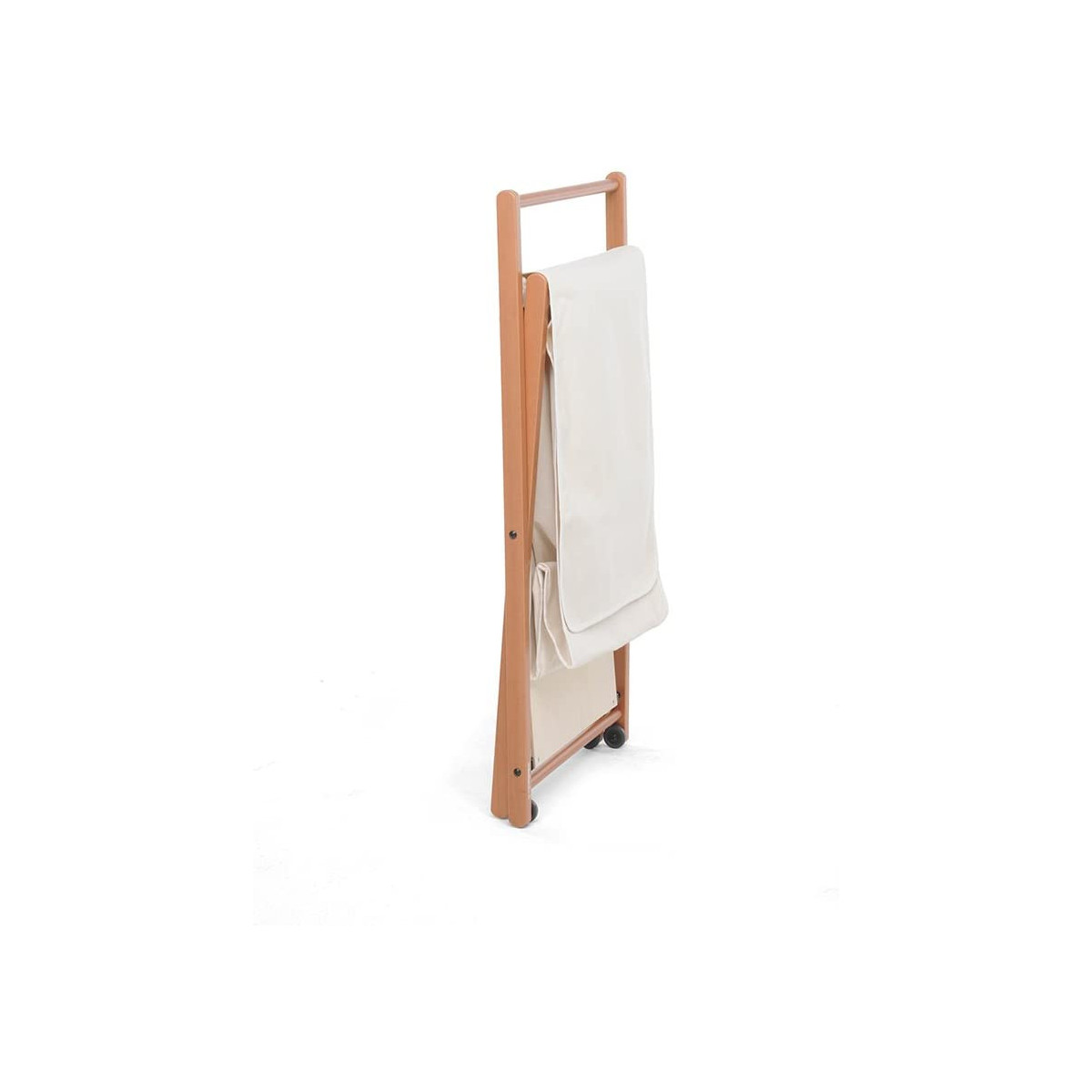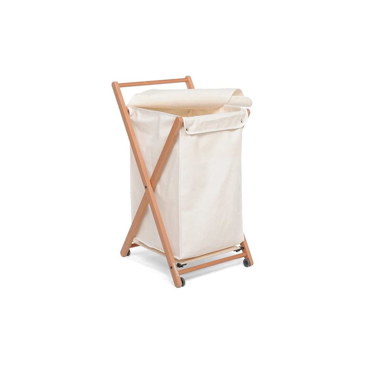 Caratteristiche tecniche: Carrello portabiancheria, si chiude completamente. La capiente sacca in cotone, è asportabile e lavabile. Si sposta su ruote gommate. Struttura in legno massiccio.