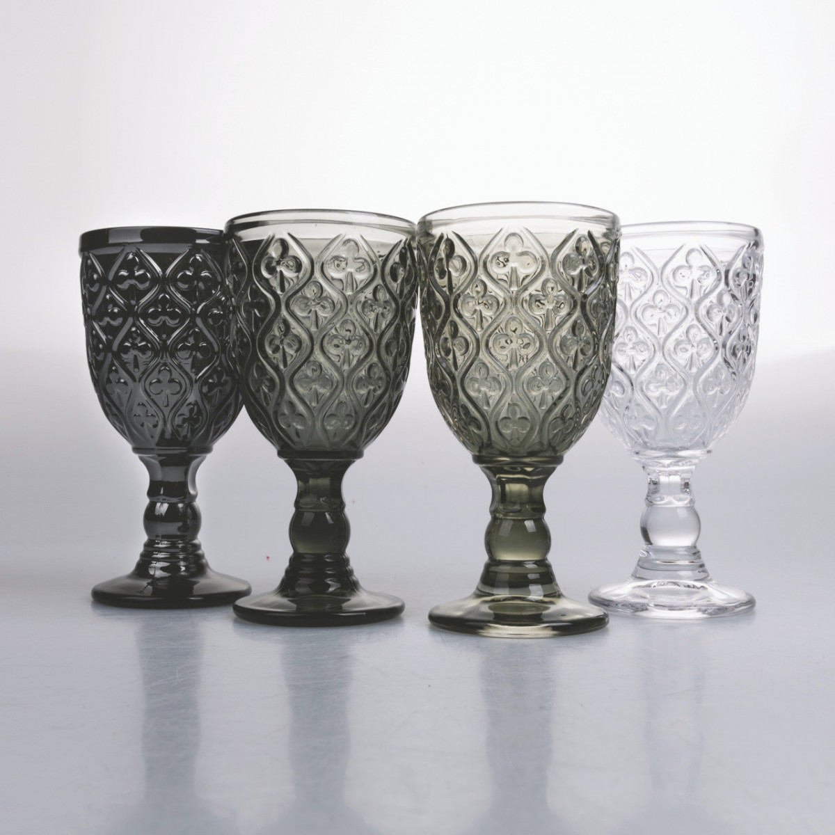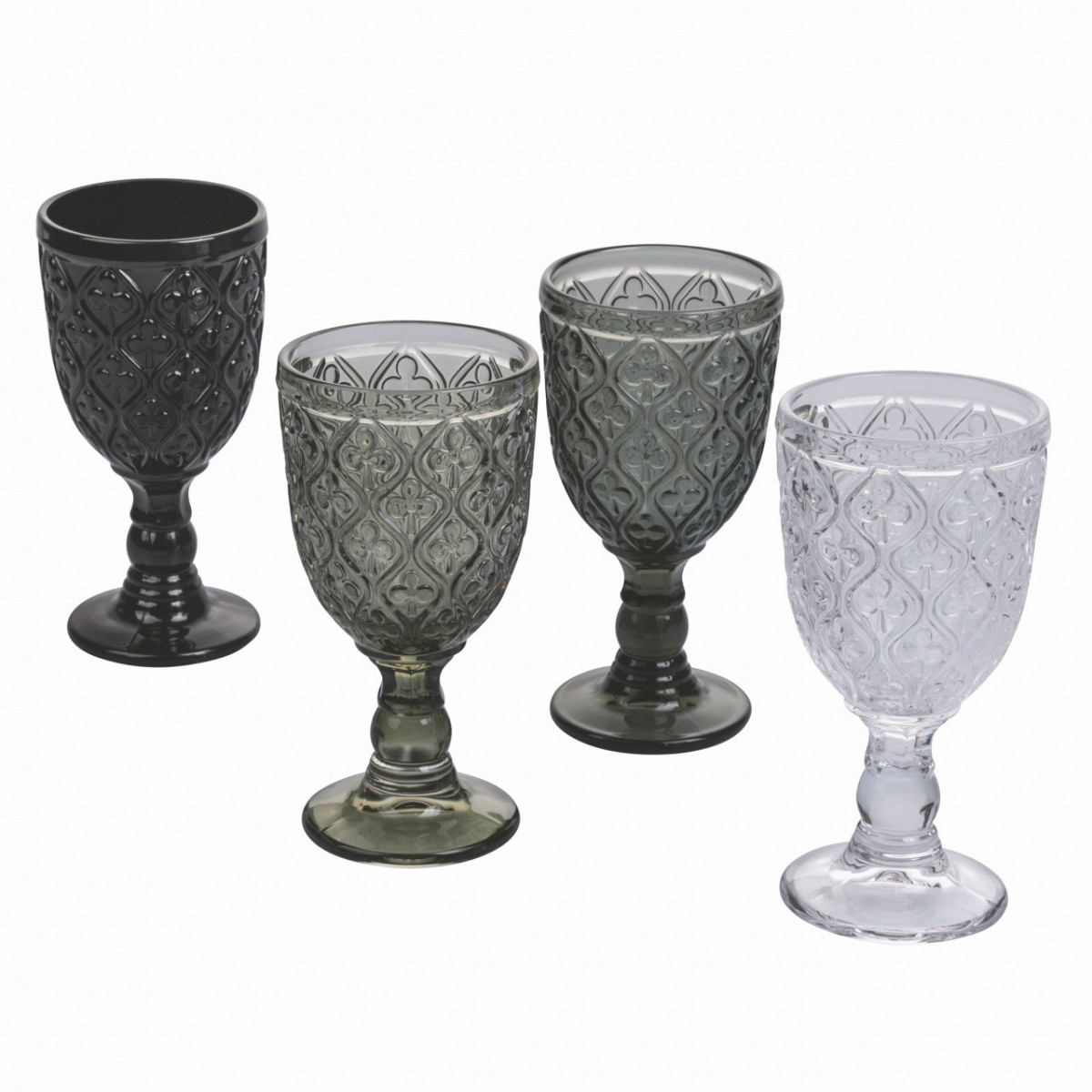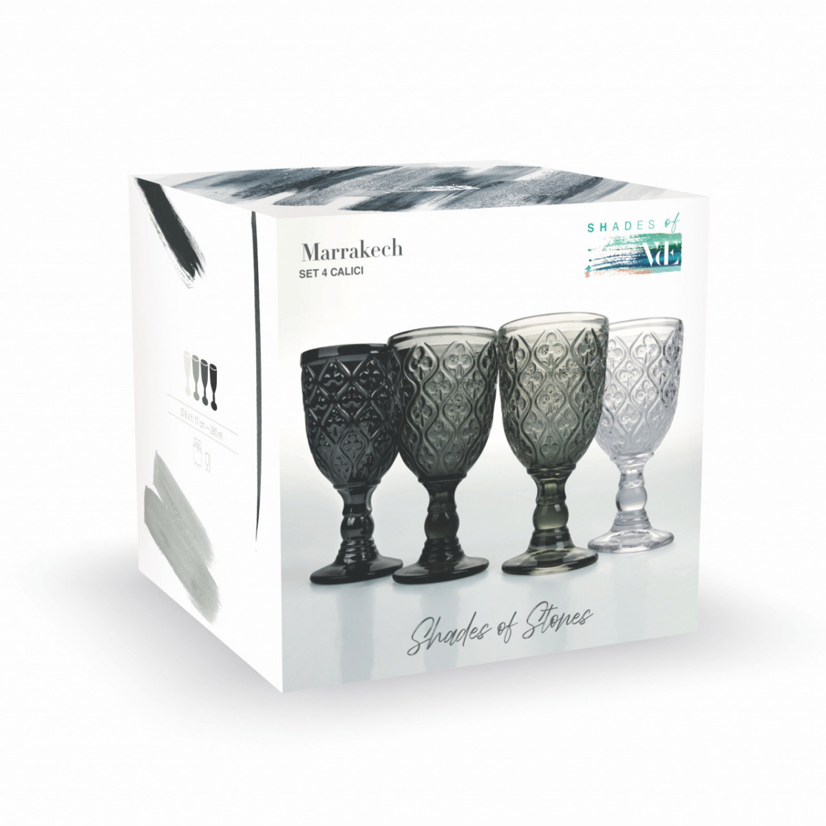 La confezione si compone di 4 calici in 4 diverse sfumature color grigio.
