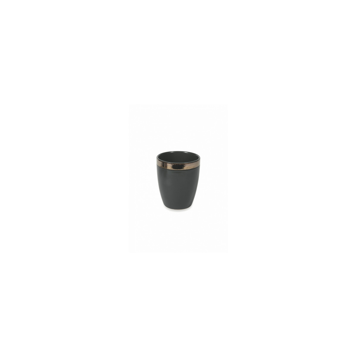 Un effetto pieno e opaco, che evoca le consistenze dell'argilla cruda, si chiude in un bordo copper, creando un accostamento elegante e suggestivo.