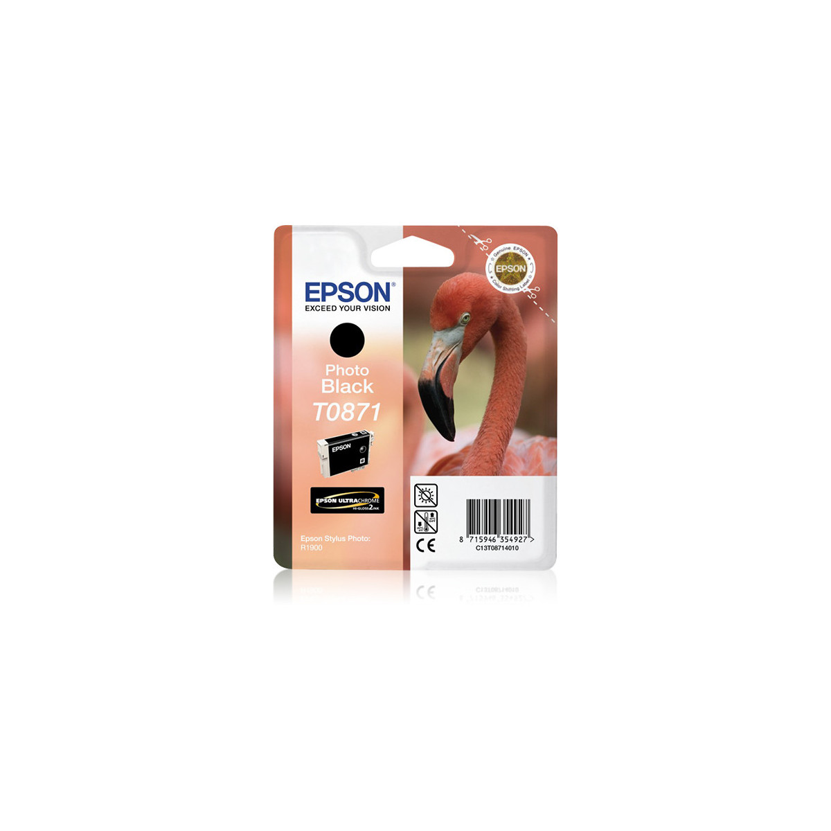 Epson Flamingo Cartuccia Nero foto. Tipo: Originale, Tipo di inchiostro: Inchiostro colorato, Colori di stampa: Nero per foto. Larghezza imballo: 145 mm, Profondità imballo: 33 mm, Altezza imballo: 120 mm. Ampiezza del pallet: 80 cm, Lunghezza del pallet: 120 cm, Altezza del pallet: 130,5 cm