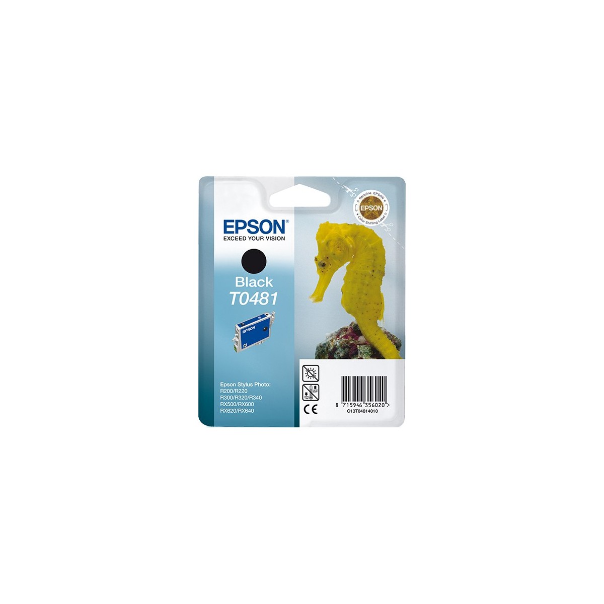 Epson Seahorse Cartuccia Nero. Tipo: Originale, Tipo di inchiostro: Inchiostro a base di pigmento, Colori di stampa: Nero. Larghezza: 246 mm, Profondità: 116 mm, Altezza: 145 mm. Ampiezza del pallet: 80 cm, Lunghezza del pallet: 120 cm, Altezza del pallet: 161 cm