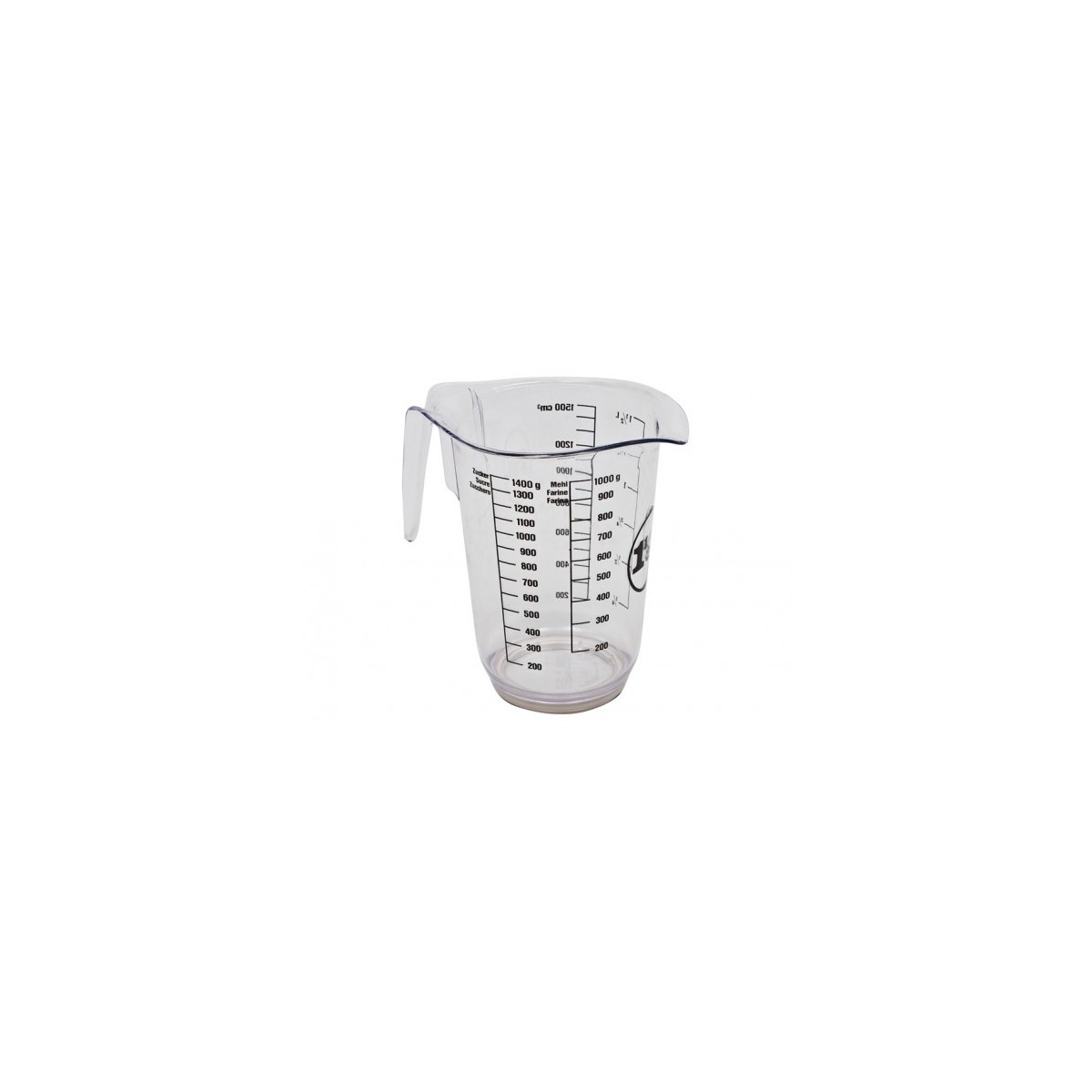 Caratteristiche : Misura graduata in SAN trasparente con robusto manico Scala graduata: 1500ccm / 1,5 litri / 1400 gr zucchero / 1000 gr farina Contenuto: 1,5 litri Lavabile in lavastoviglie