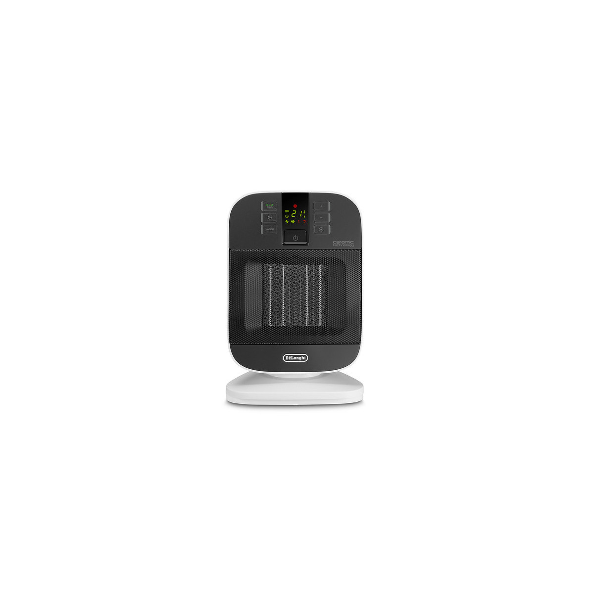 DeLonghi HFX60V20. Tipo: Riscaldatore ambiente elettrico con ventilatore, Tipologia elemento riscaldante: Ceramica, Durata massima del timer: 24 h. Adatto per: Interno, Opzioni di posizionamento: Scrivania, Tavolo, Parete, Colore del prodotto: Nero, Bianco. Potenza termica: 2000 W, Potenza termica (min): 1100 W, Adatto per stanze fino a: 60 m³. Potenza: 2000 W, Tensione di ingresso AC: 220 - 240 V, Frequenza di ingresso AC: 50 Hz. Larghezza: 232 mm, Profondità: 181,5 mm, Altezza: 351 mm