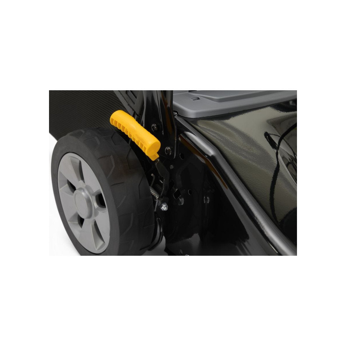 Tra le altre caratteristiche del pratico AL5 46 SA vi sono la regolazione centralizzata dell’altezza di taglio e la comoda maniglia per il trasporto.
