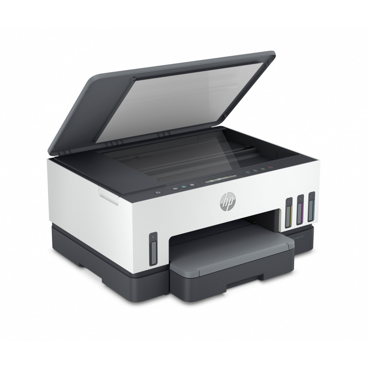 HP Smart Tank 7005. Tecnologia di stampa: Getto termico d'inchiostro, Stampa: Stampa a colori, Risoluzione massima: 4800 x 1200 DPI, Velocità di stampa (colore, qualità normale, A4/US Letter): 9 ppm. Copia: Copia a colori, Risoluzione di copia massima: 600 x 600 DPI. Scansione: Scansione a colori, Risoluzione di scansione ottica: 1200 x 1200 DPI. Massimo formato carta serie ISO A: A4. Wi-Fi. Stampa diretta. Colore del prodotto: Grigio, Bianco