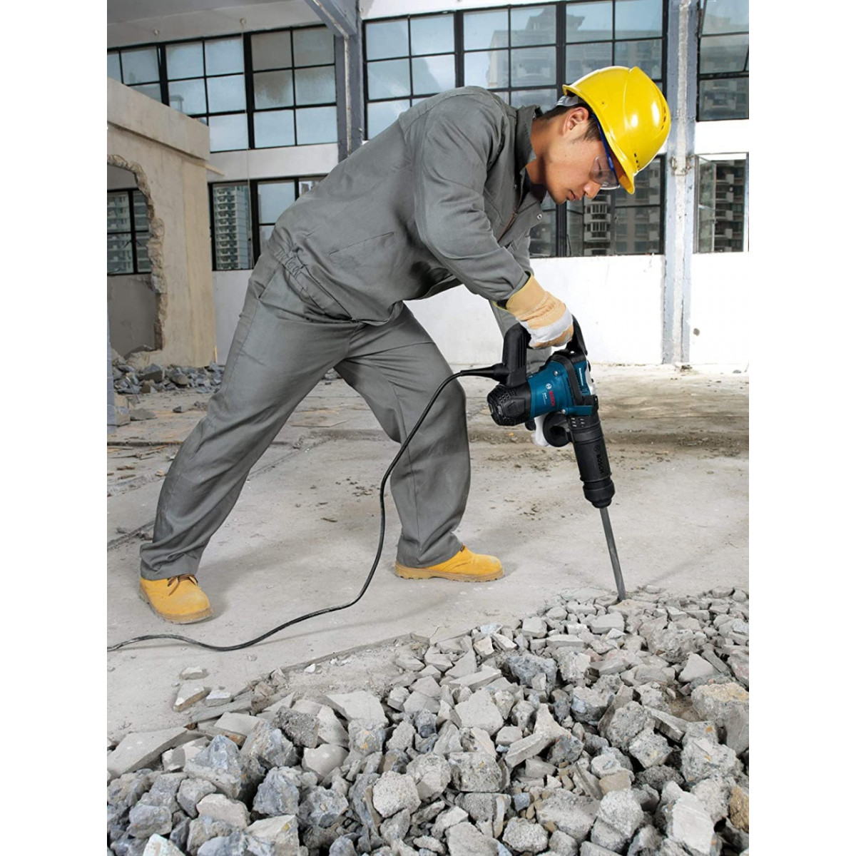Il GSH 5 CE Professional, nella categoria dei martelli demolitori a filo SDS max Bosch, grazie alla sua concezione unica, garantisce una comoda maneggevolezza e un lavoro senza sforzi in caso di impieghi prolungati. Il Vibration Control e il design dal peso contenuto consentono di lavorare senza sforzi e senza interruzioni in caso di impieghi prolungati. Il martello demolitore è anche concepito per garantire una lunga durata, distinguendosi per i suoi robusti componenti in metallo e per il sistema di lubrificazione ottimizzato. Inoltre, il suo potente motore può raggiungere una potenza del colpo pari a 8,3 Joule, per un’elevata capacità di asportazione del materiale.