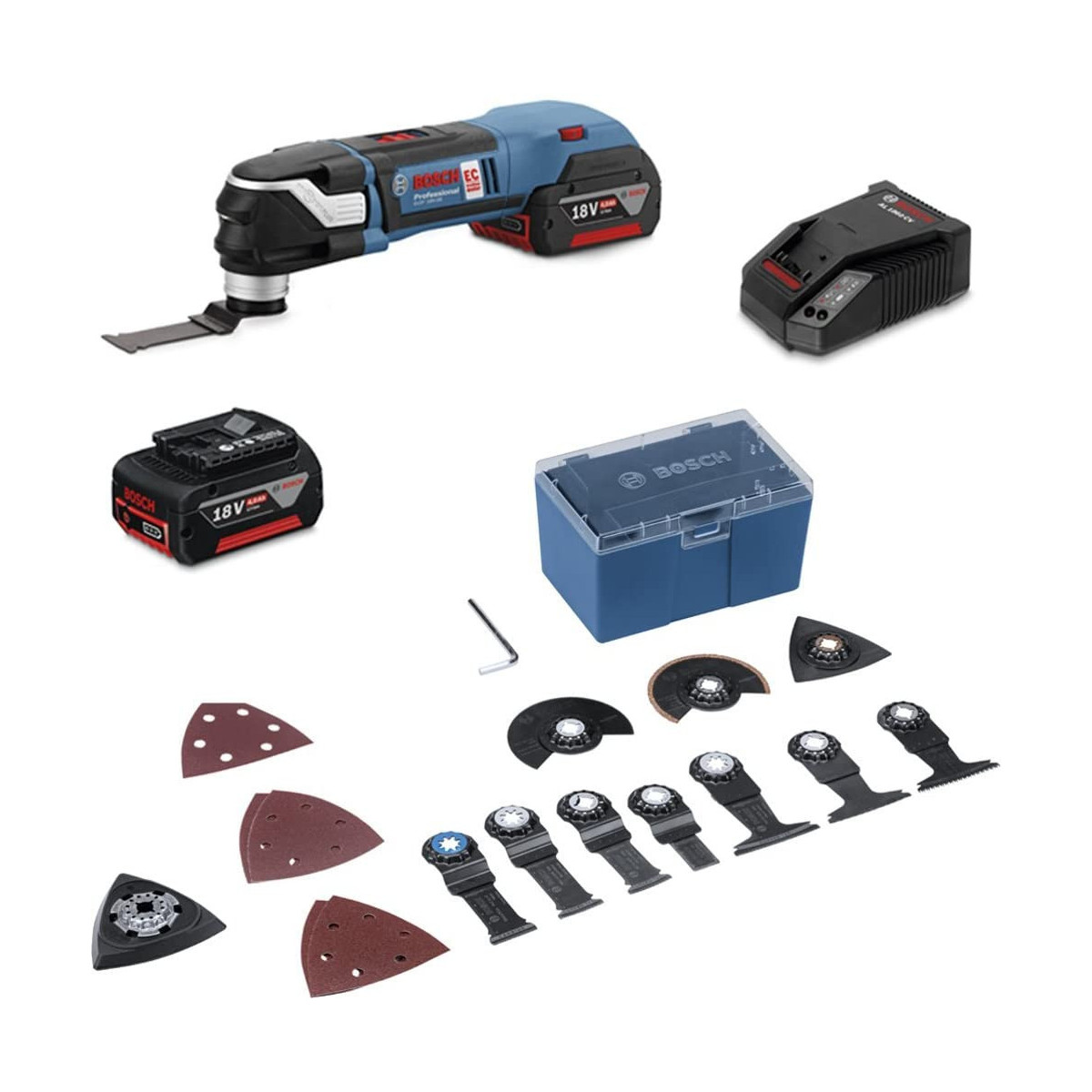 Bosch GOP 18V-28 StarLock - Utensile Multifunzione 18V, 2x5,0 Ah, 16 Accessori, CaricabatteriaL-Boxx